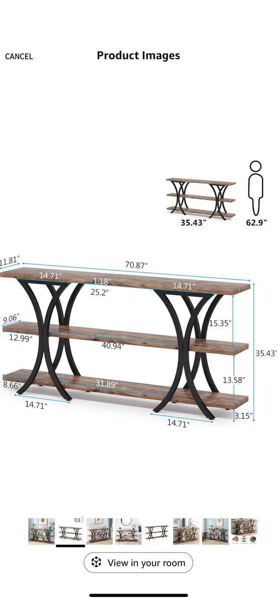70.87" L x 35.43 H x 11.81" W (top shelf). See pic for full measurement.