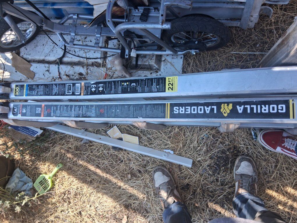 I have 4 ft letters 22 ft ladders extension ladders 10 ft a frame 20 ft extension 10 ft extension I have lots of ladders that I am no longer going to use selling off everything if you need it I probably have it platforms planks aluminum planks Gorilla ladders Little Giant Ladders