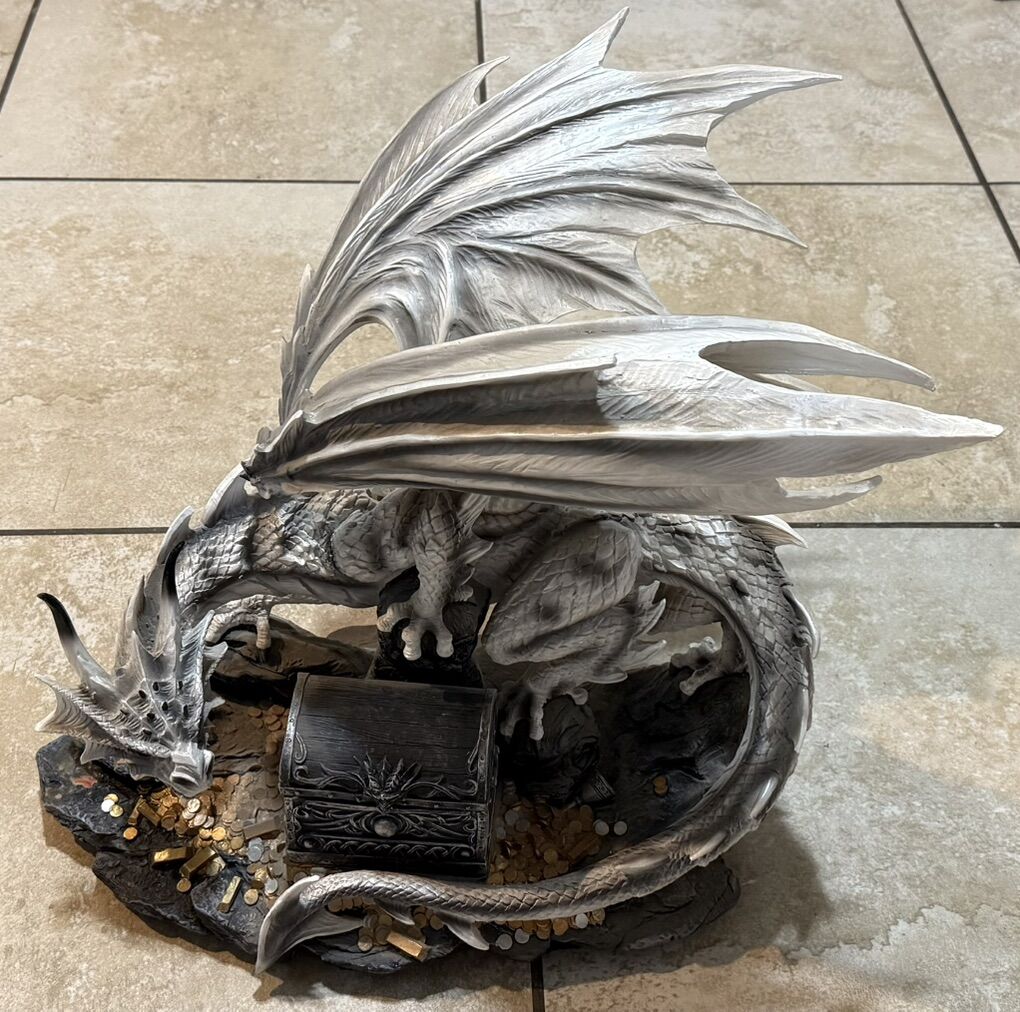 Venmo20” Medieval White Dragon with Treasure Chest Statue Fantasy Decoration Figurine Large Sculpture