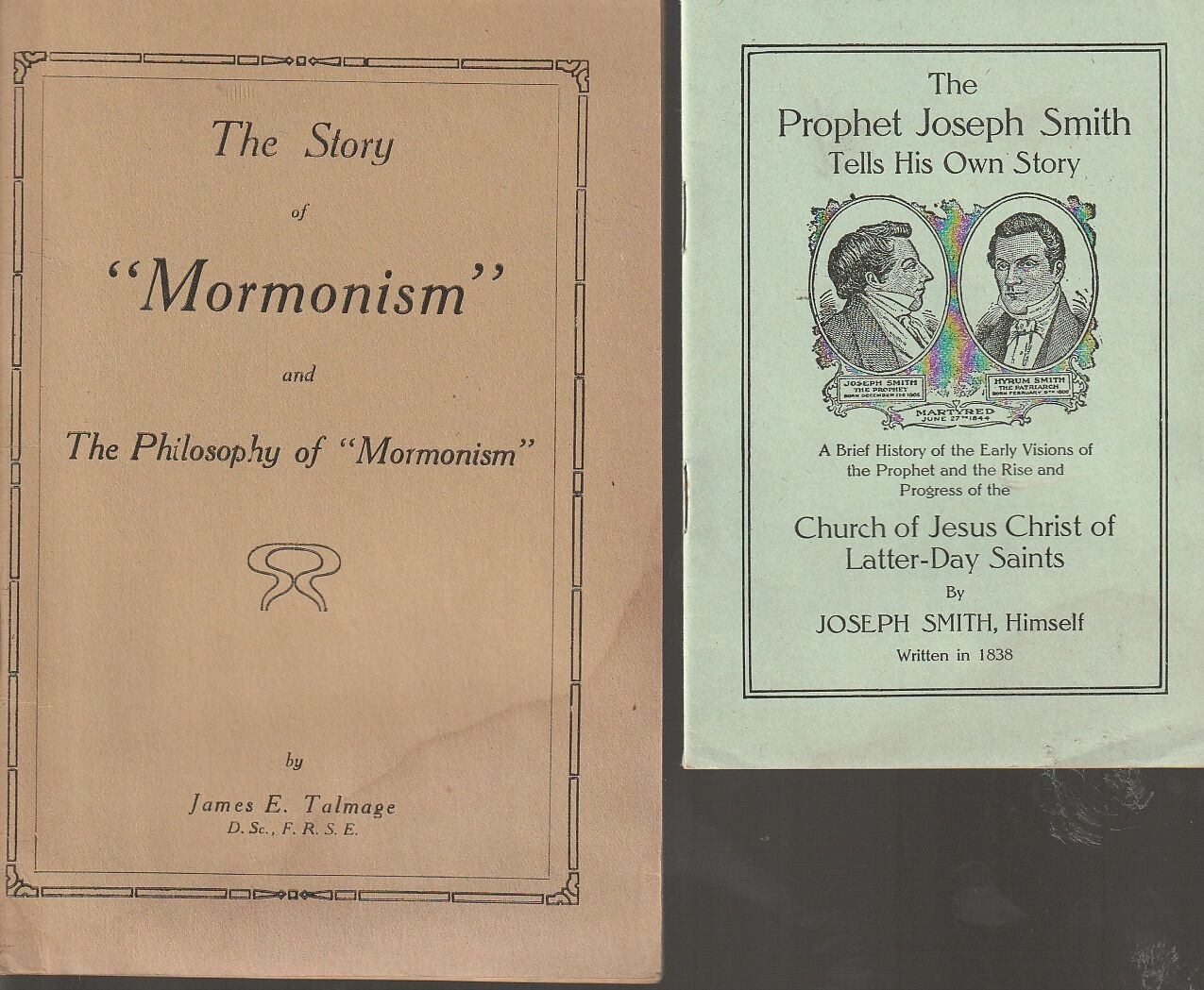 The Story of Mormonism and The Philosophy of Mormonism James E Talmage 1914 good shape except for stain that goes through about 15 pages getting lighter each page $25