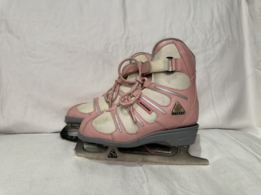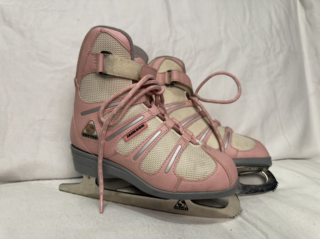 Jackson, softec youth size 1 pink & cream figure skates. These are in good condition, see photos for details. I take cash or Venmo, but cash is preferred. Text is best. 801-201-4446. Check out my other ads for additional sizes and styles.
