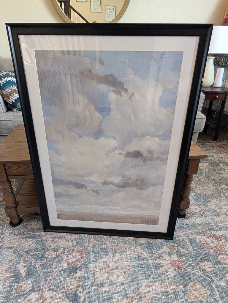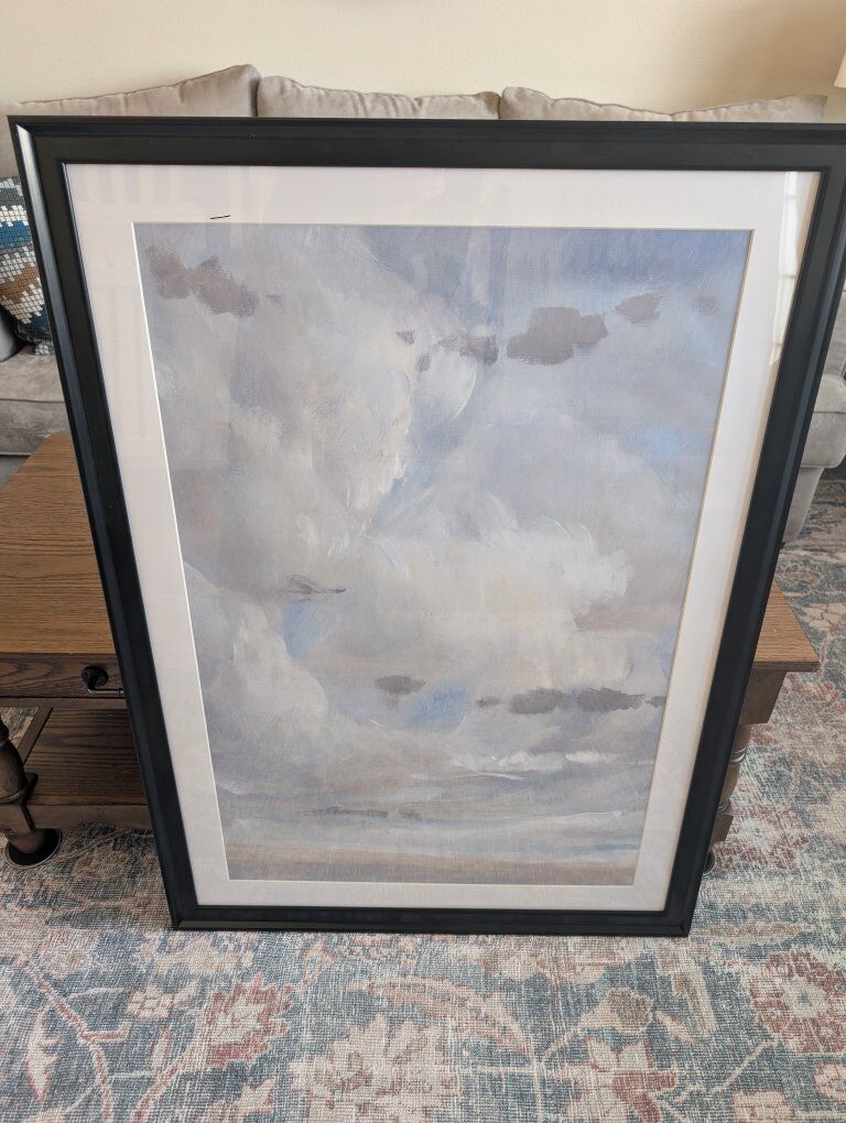 VenmoI have three large Framed abstract landscape paintings for sale. They have similar colors and styles but are each unique. Framed dimensions are 42.75in tall and 30.75in wide. One of the frames has a small chip in it as seen in the last picture. Can be touched up pretty easily. Only asking $20 each or $50 for all three. Each includes mounting hardware. Text if interested 801-903-8337