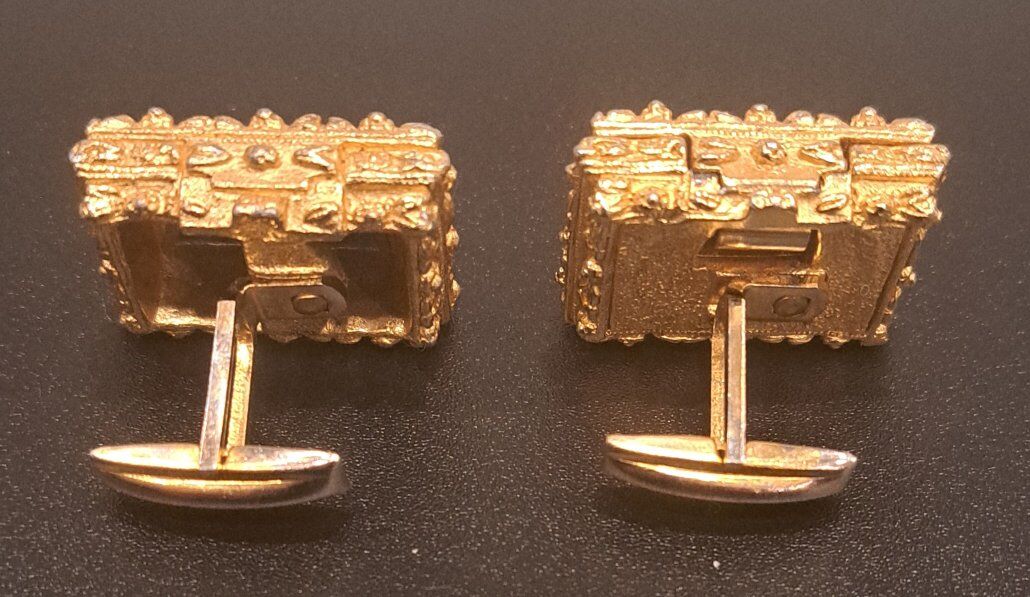 Vintage Gold-tone & Turquoise Book Cufflinks w/Compartment - $20 Cash