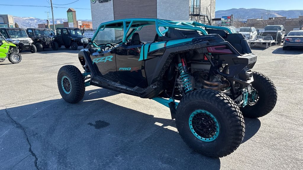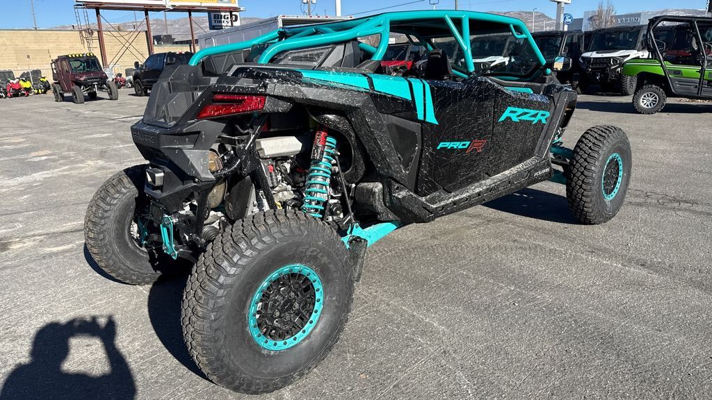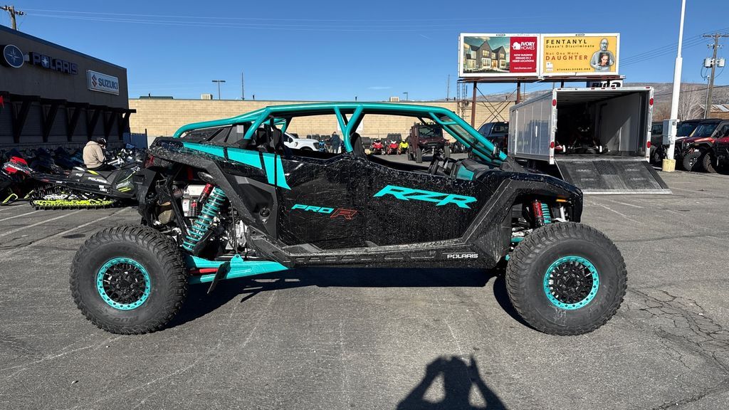 INCLUDES ACCESSORIES 2025 Polaris® RZR Pro R 4 Ultimate Champion of the Desert Unleash a force of nature with RZR Pro R, our most powerful RZR with race-proven durability. Features may include: A Bold New Design Show up and stand out with the bold new design of RZR Pro R–delivering more and style and performance to win it all. Refined Interior Winning starts from within, and RZR Pro R is no exception. Its interior is meticulously designed with more comfort and convenience, empowering you to ride farther, drive harder and finish in first place. PERFORMANCE Out-thrill them all with an off-road beast designed to dominate. RZR Pro R delivers heart-pounding performance with race-proven components to defy deserts and conquer dunes. Game-Changing Technology Take your ride up a notch with off-road optimized tech. From advanced connectivity to groundbreaking sound, the RZR Pro R features cutting-edge tech to unlock more potential off road. NEW! Fresh Cabin Air Intakes NEW! Animated RZR Fang Accent Lighting NEW! Rockford Fosgate® Stage 4 Audio NEW! Color Matched 5-Lug Beadlock Wheels NEW! Pro Climate Heat & Vent seats NEW! Front Painted Fascia NEW! Painted Center Hood DYNAMIX DV with 4 Selectable Ride Modes FOX 3.0 Live Valve X2 Internal Bypass Shocks RIDE COMMAND Off-Road Mapping Integrated into a 7" Display Vehicle Telemetry Data with RIDE COMMAND+ Rear Camera Telescoping Steering Wheel & Button Controls Aluminum Roof Retractable 6-pt Harness