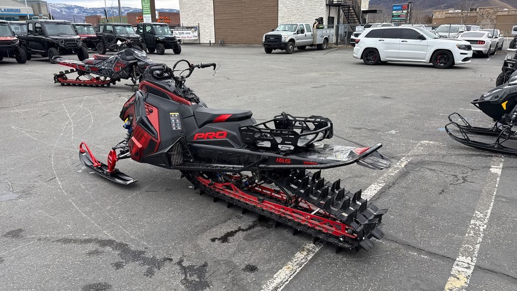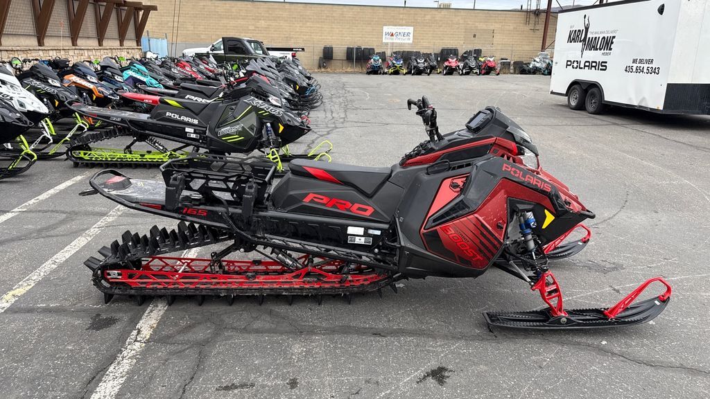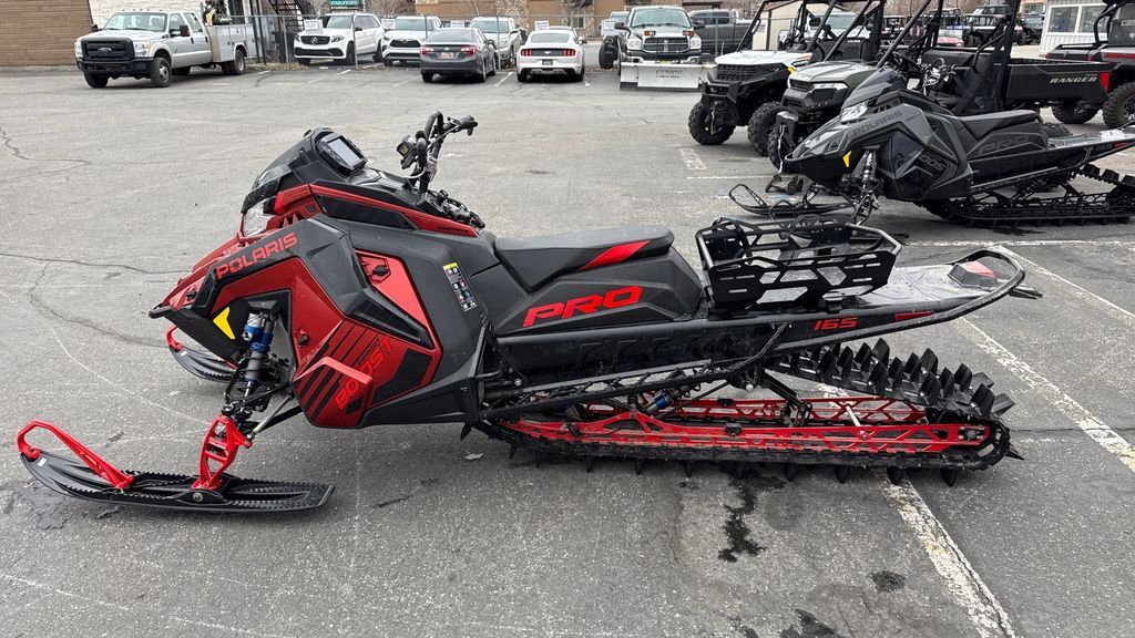 2025 Polaris® Boost PRO RMK 165 Storm Gray / Indy Red UNMATCHED PRECISION IN THE TECHNICAL TERRAIN. The PRO RMK delivers balanced and precise performance in the steep and deep. Features may include: THE BEST MOUNTAIN SLED JUST GOT BETTER - AND EVEN LIGHTER The PRO RMK delivers instantaneous lift and lightning fast response. 2025 Boost and 9R PRO RMK models are up to 7 lbs. lighter and have a redesigned throttle system, 1" lower seat, improved running board clean-out, and a lightweight headlight for improved connection and control to deliver the best RMK experience yet. Rider First Design. Effortless Control. The Matryx RMK platform includes a narrow seat, tank and console that provide improved rider connection to the sled while the narrow bodywork enables more agility and less drag in the snow. The new seat design and running boards further improves rider mobility on the sled while the new throttle system helps you feel connected to the sled on every ride. Maximum Lift. Maximum Precision. The PRO RMK Rear Suspension features a balanced, optimized geometry and rail design to deliver power directly to the snow to pop up and drive forward. Rigid design allows for precision to hold lines in the most technical terrain. Available in 155 and 165 lengths. Choose Your Power. With three engine choices from the Patriot Family. Choose the legendary durability and relentless acceleration of the Patriot 850, or the Factory Mods… the ultra-responsive Patriot 9R or turbocharged Patriot Boost. ULTIMATE CONTROL IN THE STEEP & DEEP When we build a sled, we build it to be the best sled for each unique riding style, not simply a different sticker or name. Every part is scrutinized to deliver what you need as a rider. For 2025, we've made refinements to deliver an even better riding experience in the backcountry. Ultimate Control The RMK Matryx Slash platform features a next-level rider interface and slashed, tapered tunnel. Combined they deliver minimized drag and maximum control Lightning-Fast Response. Puts The Power Down. QuickDrive is the lightest drive system in the industry and produces the lowest inertia for optimum response. Choose between the 325 Series 9 Track for instant traction and forward drive in deep snow or the 275 Series 8 track for versatility and traction in varying snow conditions. Precise Steering. Confidence Inspiring. The RMK React Suspension lets riders effortlessly initiate sidehills and experience less fatigue with the most predictable ride. It includes a 36"-38" stance, a sway bar designed for predictable handling, and forged a-arms and spindles optimized for strength and durability. Lightweight And Precise. Choose from two shock options. Ultra-premium Walker Evans Velocity Shocks are the best of the best in various mountain conditions. They feature remote reservoirs for increased oil capacity to ensure all-day performance and durability, along with compression adjusters to dial in the ride. The Walker Evans Lightweight Monotube Shocks are standard and feature a simple and durable one-piece design. INDUSTRY-LEADING TECHNOLOGY Polaris sleds lead the way in technology that enhances your ride. Technology built to help you plan rides, track your group, keep your sled cool in tough conditions, and see your way from dusk til dawn. Built To Stay Cool And Light. The shortened centralized cooling system on the RMK Matryx Slash platform features reduced dry weight and delivers improved cooling capability while reducing snow and ice build up. Reversible scratchers will help to keep your Patriot power running within spec.
