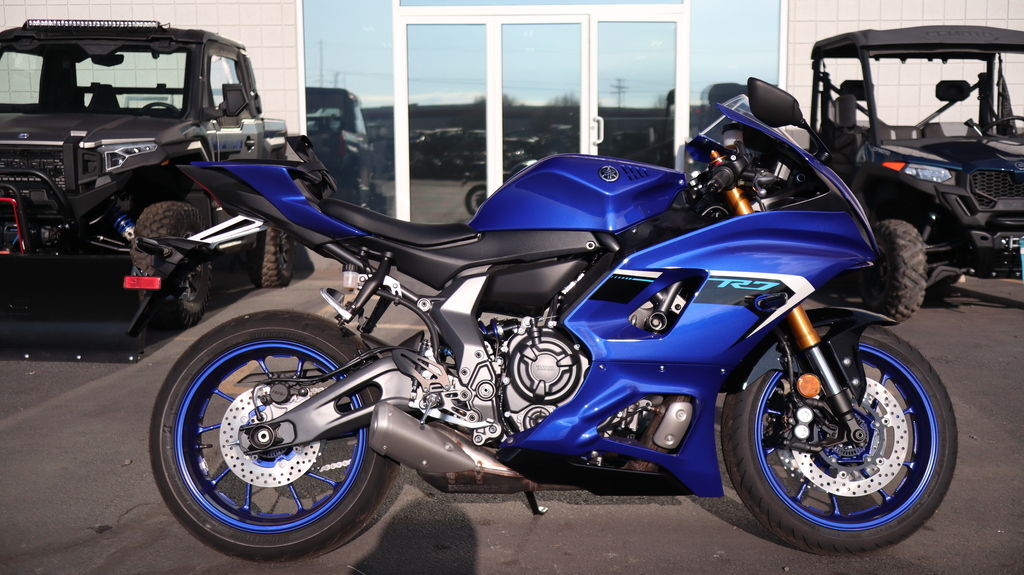 2025 Yamaha YZF-R7 WHERE R WORLD MEETS YOURS A new generation Supersport with Yamaha's legendary styling combines an advanced CP2 engine with an ultra-thin and lightweight chassis to provide torquey performance on both the track and the street. Features may include: Torquey CP2 Powerplant Yamaha's proven 689cc twin-cylinder DOHC fuel-injected engine delivers excellent power and performance throughout the rpm range for an exhilarating ride and a true Supersport experience. Its 270-degree crankshaft provides linear torque for exciting acceleration and limited vibration. Thin Proportions for Perfect Control With the slimmest proportions of the entire R-Series family, the YZF-R7 provides confident cornering performance on the track and quick, agile direction changes on twisty roads. The slim design also reduces wind resistance for optimal aerodynamics, while aerodynamic bodywork incorporates the rider's body to improve the flow of air around the bike. Sport Suspension The YZF-R7 features an inverted 41mm front fork with optimized spring rate and damping settings for an excellent front-end feel during cornering and braking. The linked-type Monocross single-shock with adjustable spring preload and rebound damping strikes an ideal balance between ride comfort and Supersport performance for capability across a wide range of uses from urban commuting to track days. Sleek R-Series Styling The YZF-R7's aggressive design boasts the slimmest bodywork in the Supersport lineup for optimal aerodynamics, handling and agility, while the signature M-shaped duct and tail wing are reminiscent of Yamaha's flagship Supersport YZF-R1. Advanced A&S Clutch An Assist & Slipper clutch reduces clutch lever force while providing seamless downshifts and a controlled feeling over the bike's engine braking. This helps make the Supersport riding experience more accessible to more riders. For fast and smooth upshifts, an optional Quick Shift System (QSS) is also available on the YZF-R7.