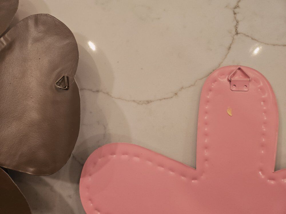 VenmoAdorable metal wall hangings used in little girl's nursery. Light weight (hung on wall with a sewing straight pin!) Subtle sparkles and variety of textures makes for a beautiful accent on your walls! Small pink flower 12 inches All others 15 inches