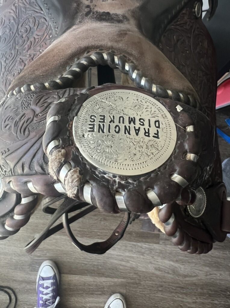 Circle Y 15” seat and 5” gullet with Arabian bars. Fleece is in great shape, normal wear on saddle, some damage on the horn from my belt getting caught on it. Comes with matching bridle. Fantastic saddle but I no longer have a horse that it fits.
