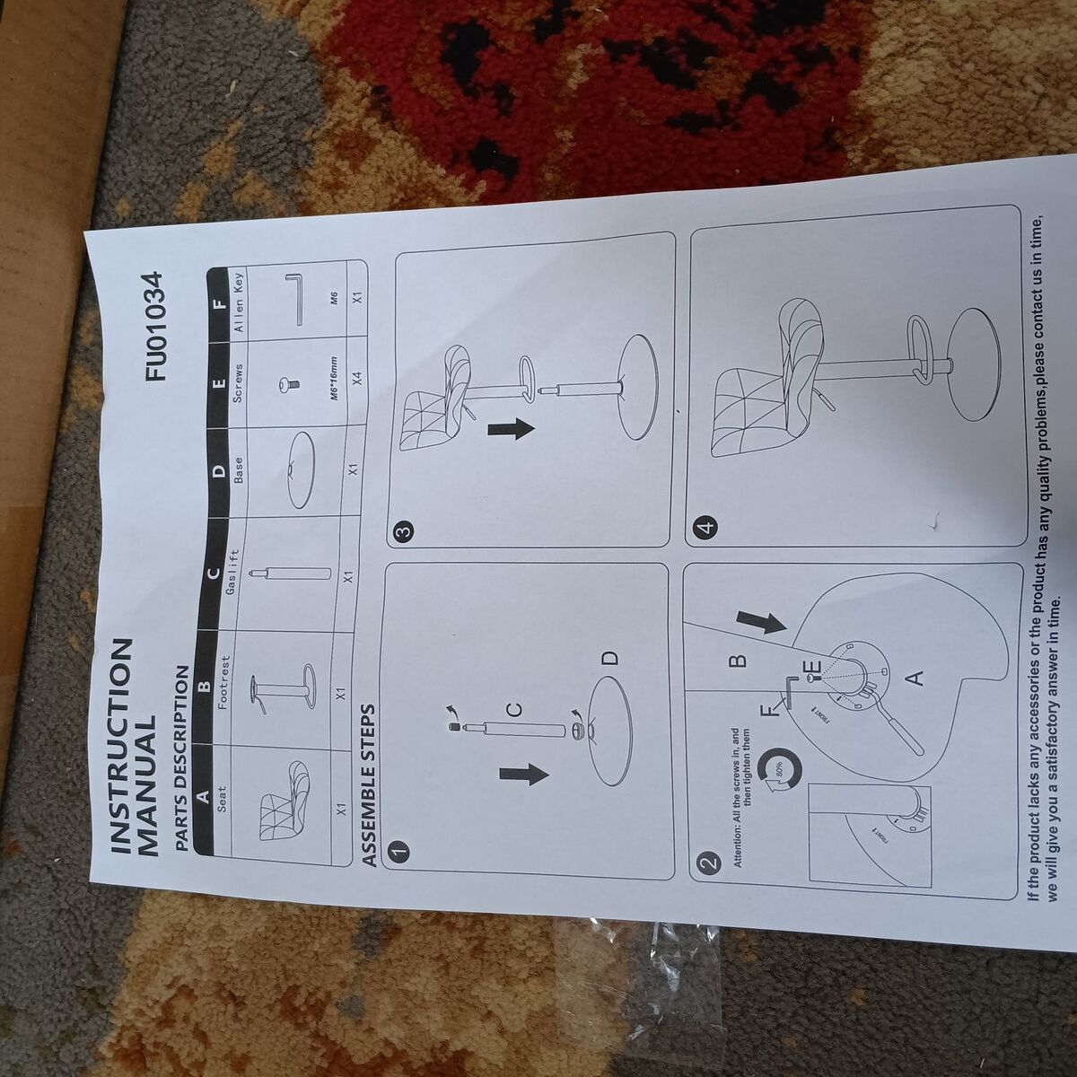 Stylish Black Counter Stool FU01034 18.4×19×42.9 in new in box