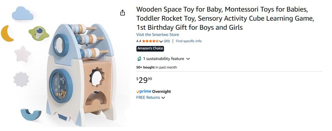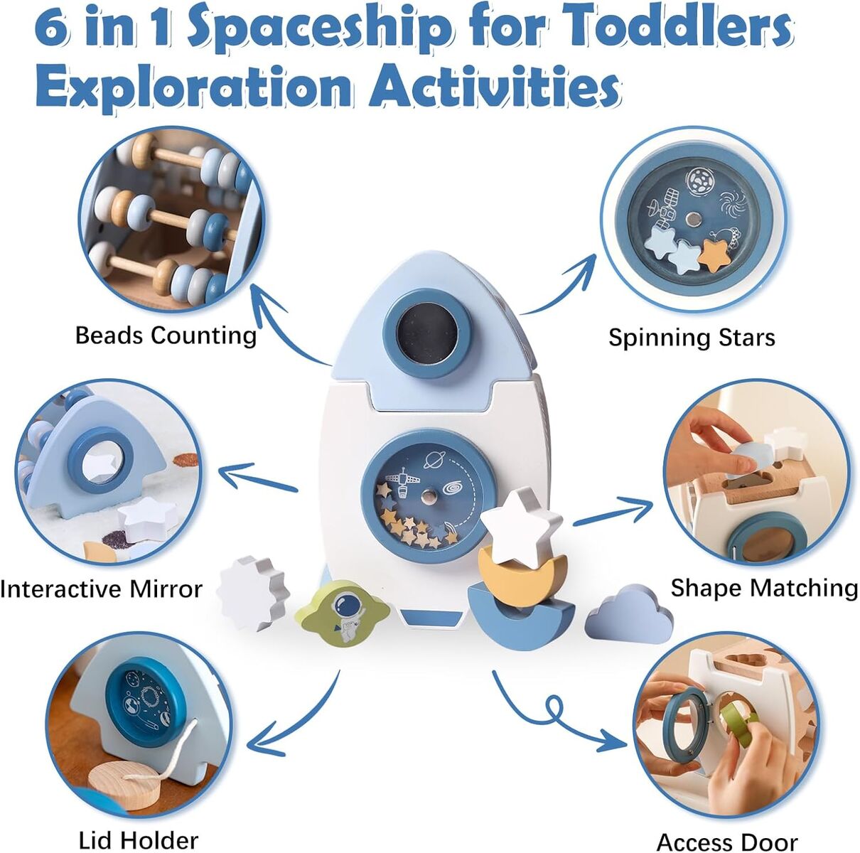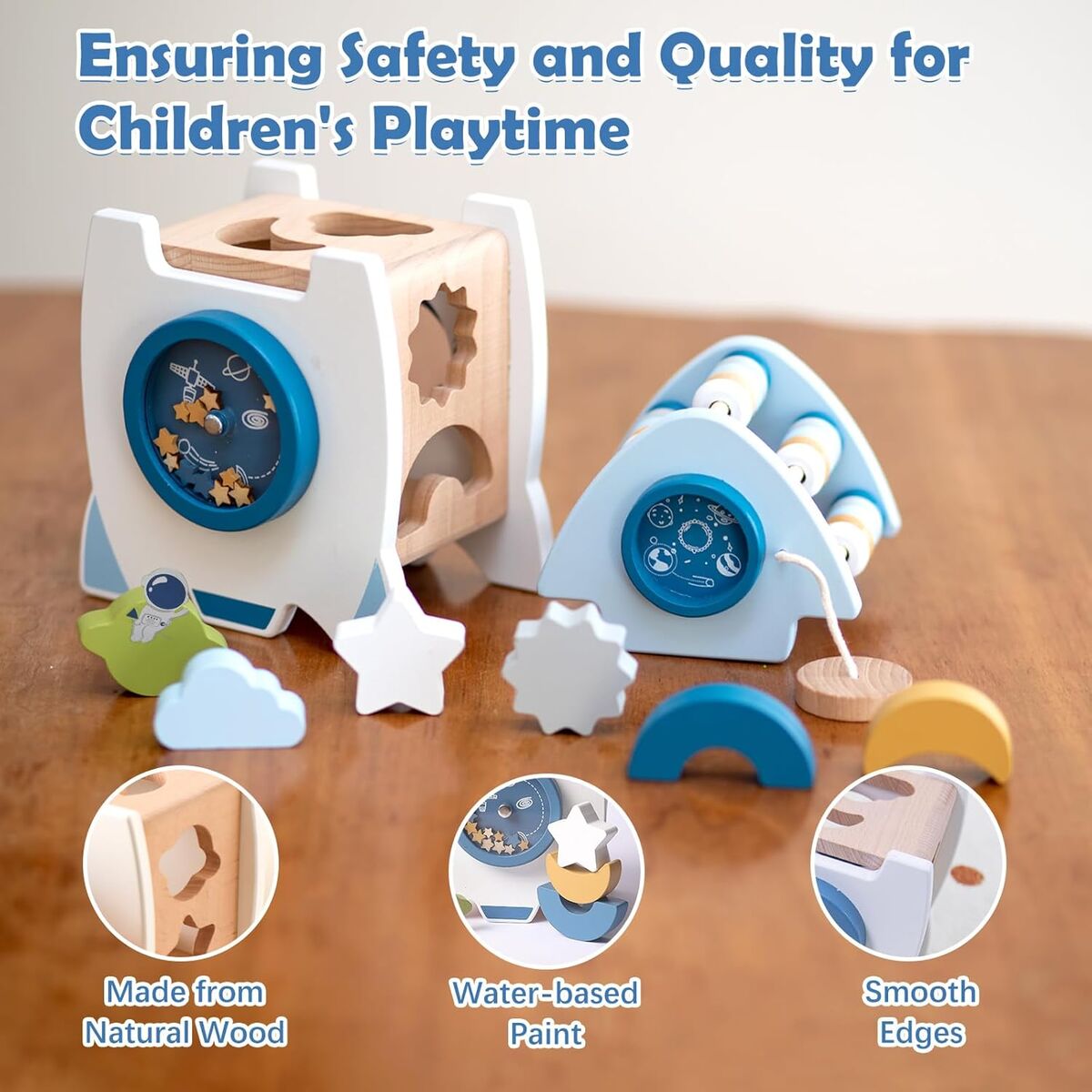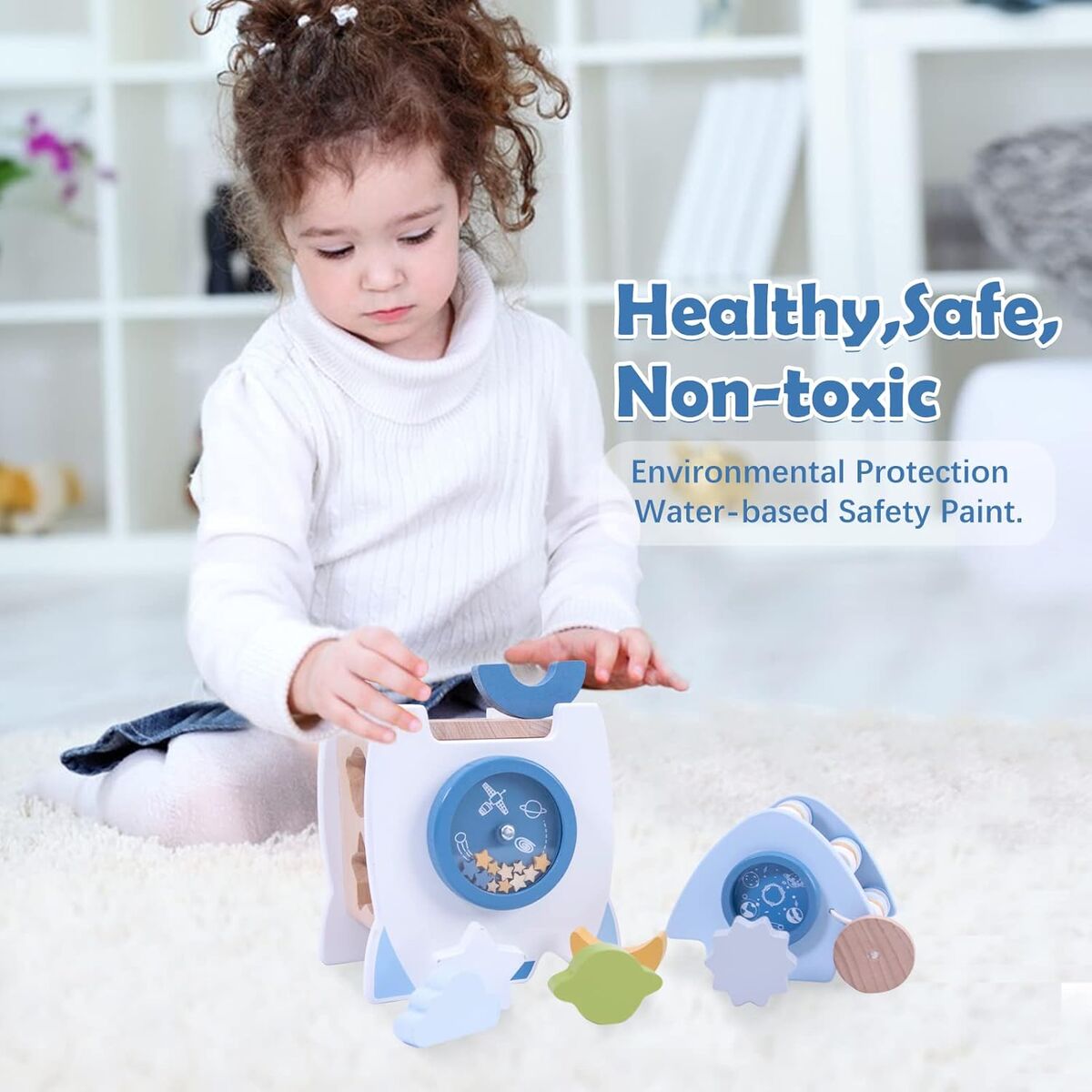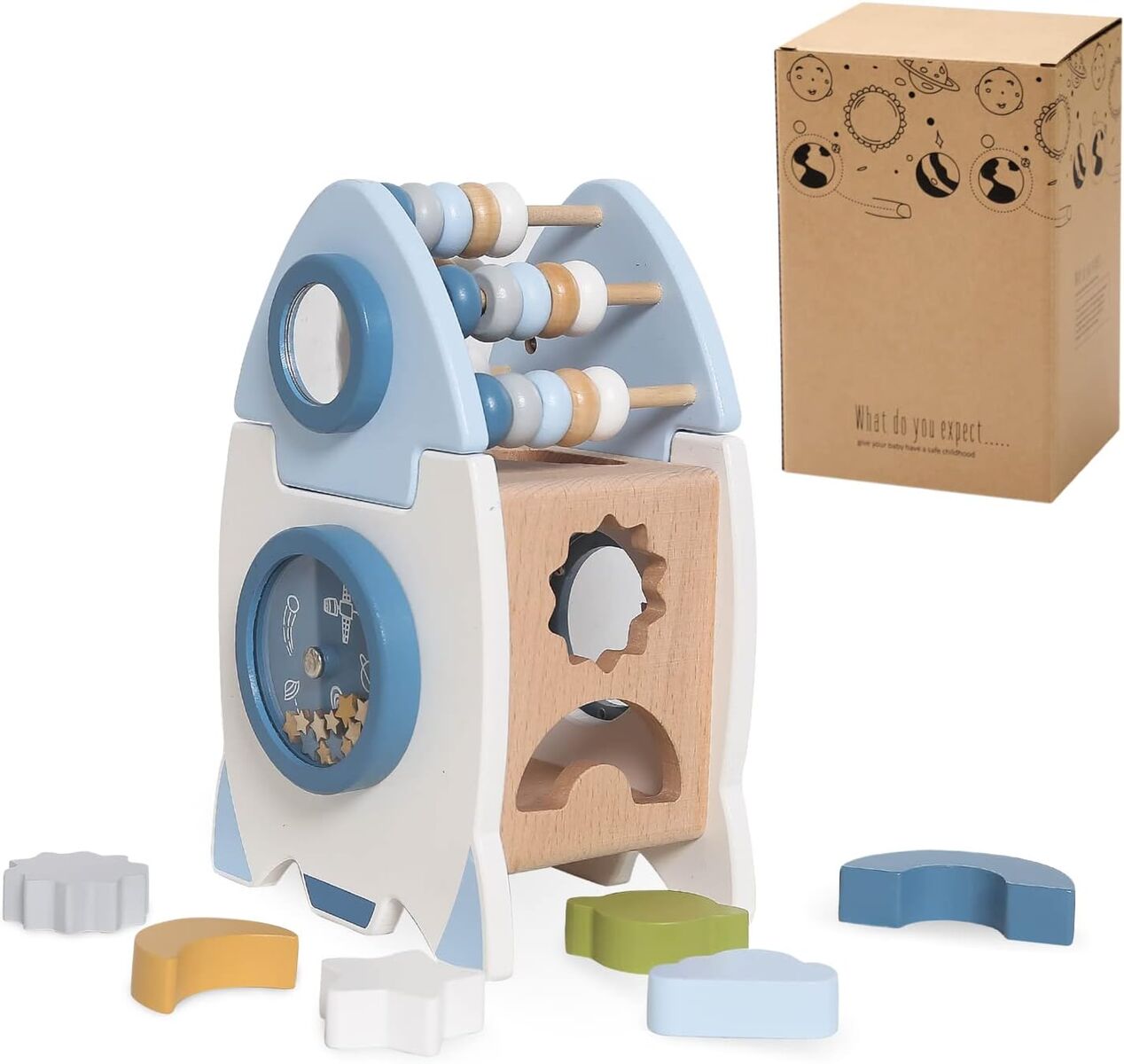 ApplePayWooden Space Toy for Baby, Montessori Toys for Babies, Toddler Rocket Toy, Sensory Activity Cube Learning Game, 1st Birthday Gift for Boys and Girls