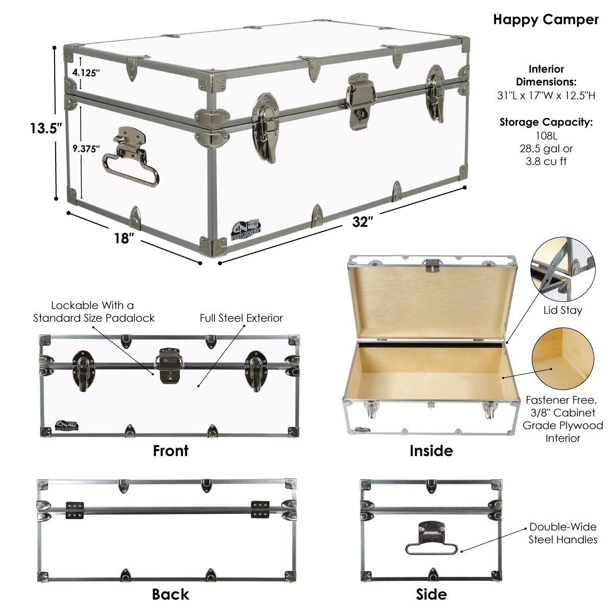 Happy Camper Steel Footlocker Trunk 32x18x13.5"