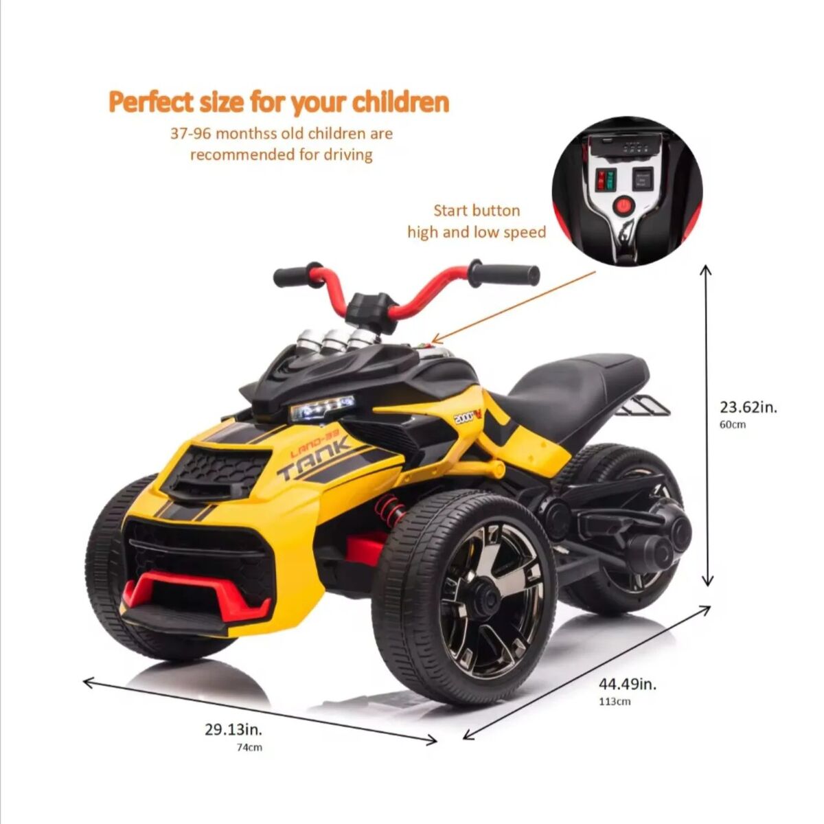 Zelle3 Wheeler Electric Vehicle, Battery Powered Ride on Motorcycle for Boys Girls with LED Lights, Music