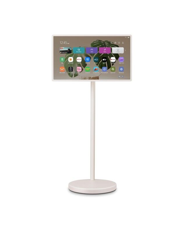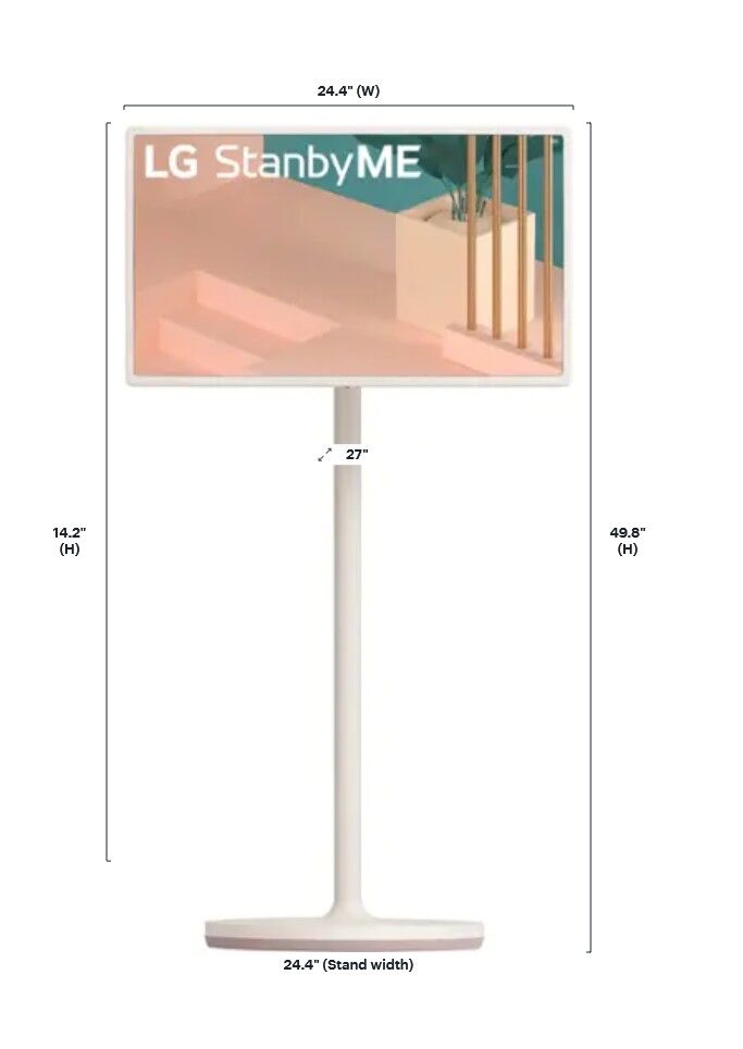 Made for here, there and everywhere—It’s not just a screen, it's a lifestyle. With a built-in battery, full swivel rotation, wheels, touchscreen, and AirPlay connectivity, the LG StanbyME mobile LCD display adapts to every one of your needs—no matter where you are. Built in a neutral, calming beige color design, it'll mesh seamlessly with your decor. The StanbyME features the α7 Gen4 AI Processor, which automatically recognizes content genre and your ambient lighting conditions, optimizing screen settings accordingly for crisp, high-quality visuals that ensure an improved viewing experience. A variety of connection options including AirPlay, NFC, HDMI, and USB ensure that you can you can use the StanbyME wherever you wish, with any of your devices. Apple TV, AirPlay, iPhone, iPad, Mac, and HomeKit