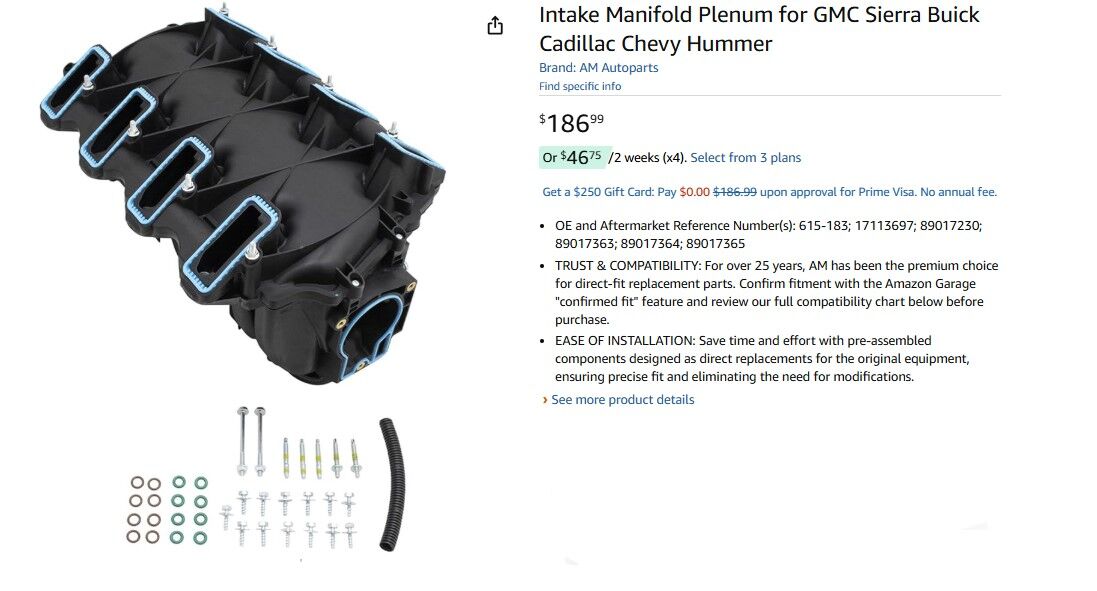 ApplePayIntake Manifold Plenum for GMC Sierra Buick Cadillac Chevy Hummer TRQ IMA07935