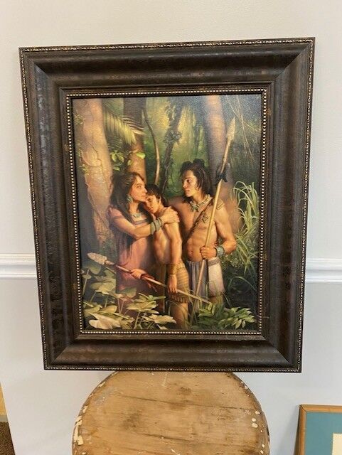 Faux wood frame. Canvas. Print. Beautiful browns and greens.