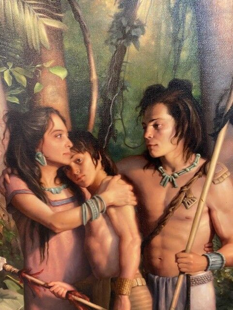 This painting depicts a mother with her two stripling warrior sons, bidding them farewell as they go off to fight for the liberty of their people. It is meant to represent the moment when every child must independently face the challenges and duties of life.