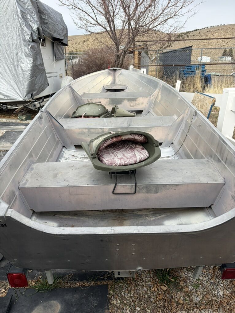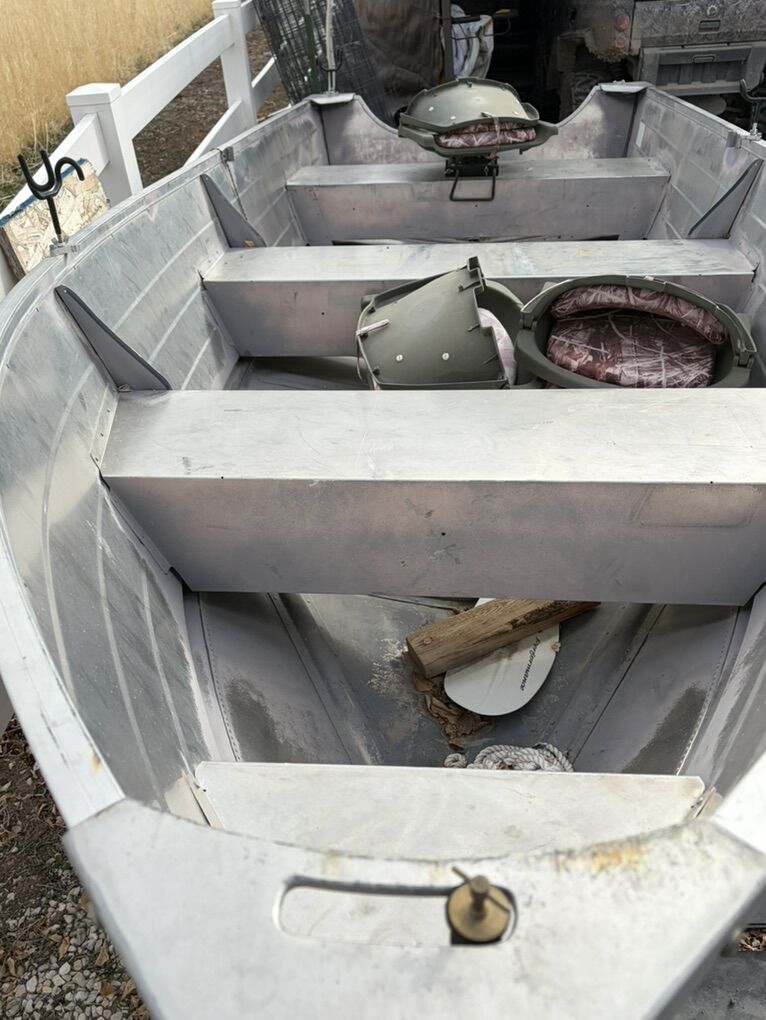 Venmo1990 14 footer. Has been used maybe 10 times. In great shape. Trailer included. Trailer is in great shape, tires are good, taillights are cracked lenses but i have a new set of taillights for it. 3 swivel chairs and mounts also included Anchor, plug and fishing pole holders $1700 obo