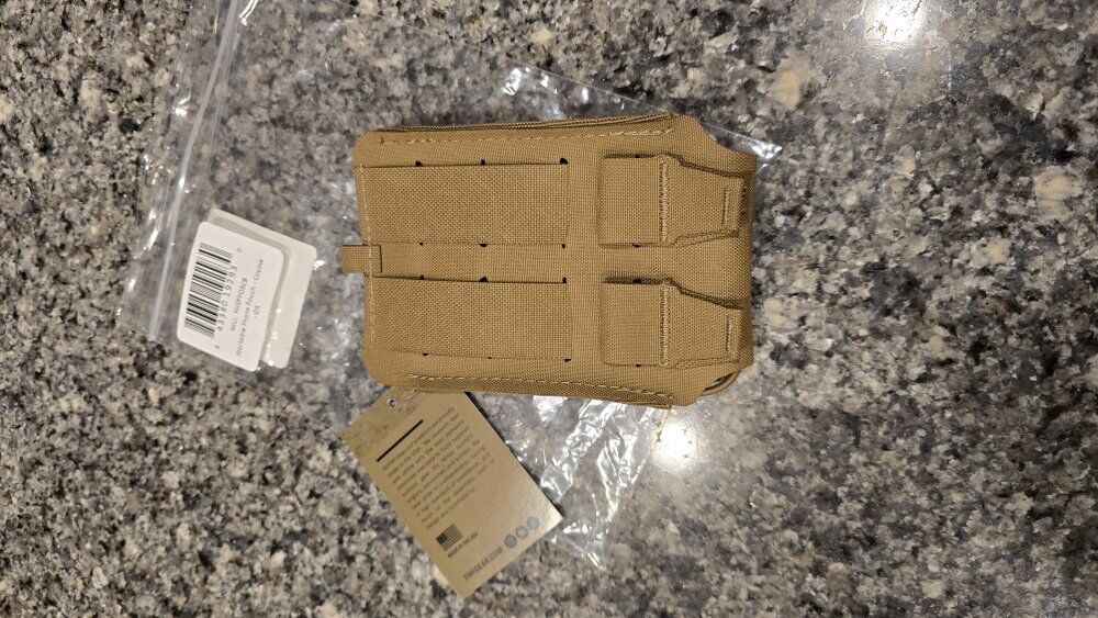They are made from waterproof Squadron laminate and elastic, the Stackable Phone Sleeve delivers durable, secure, and low-profile protection for your phone. They can be attached to your Foundation Wings, Apex Belt, or Chest Rig. The front MOLLE panel lets you add another accessory, such as the M1 Rangefinder Pouch or an E3 pouc . The retention system adds versatility, allowing you to enhance security or repurpose the sleeve to carry an AR Mag.