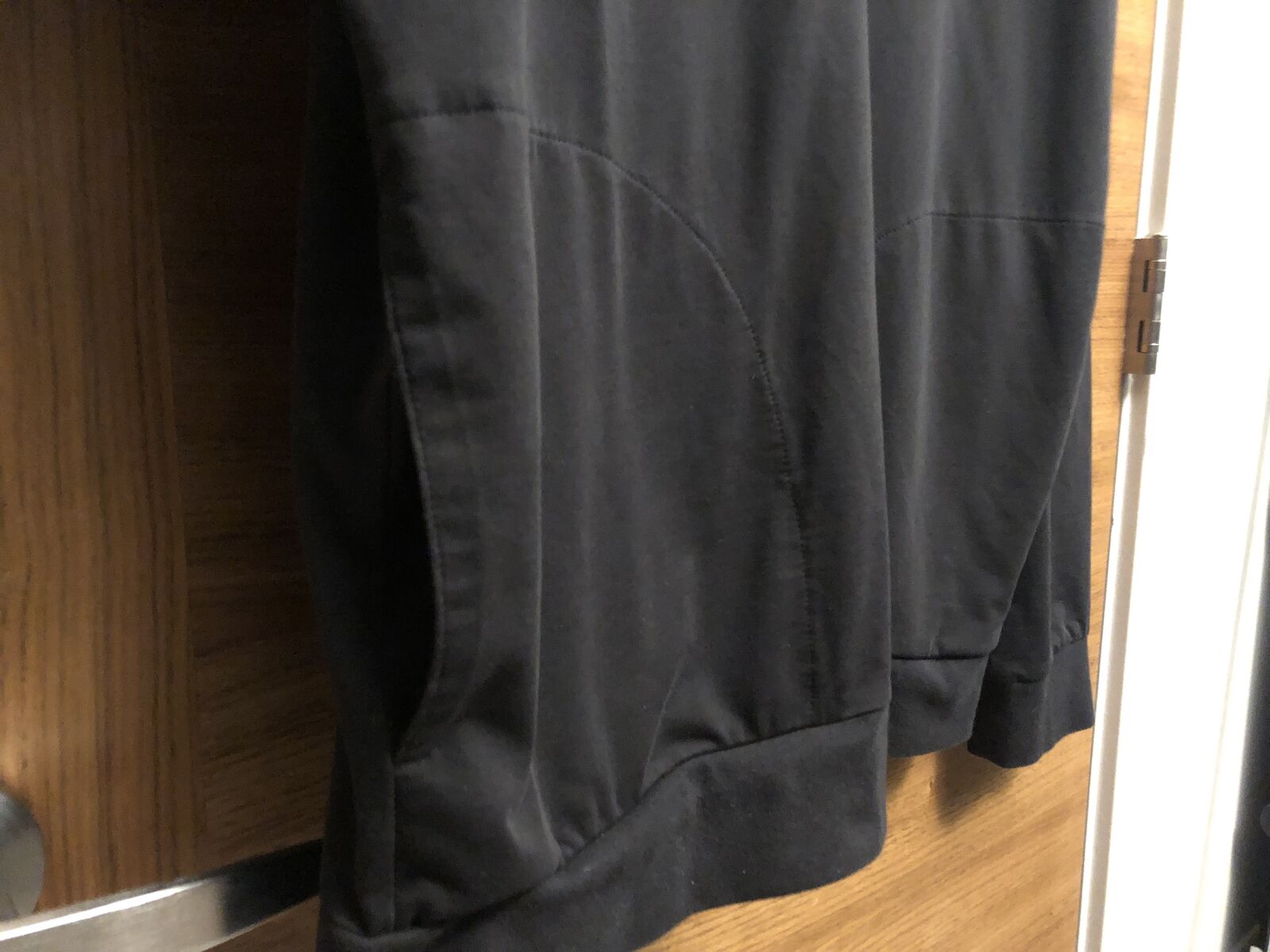 Size Large. Black Color. In Excellent Like New Condition No Rips Holes or Tears. Has Side Seam Pockets on Both Sides. Best for someone 5’9” to 5’11” Tall.