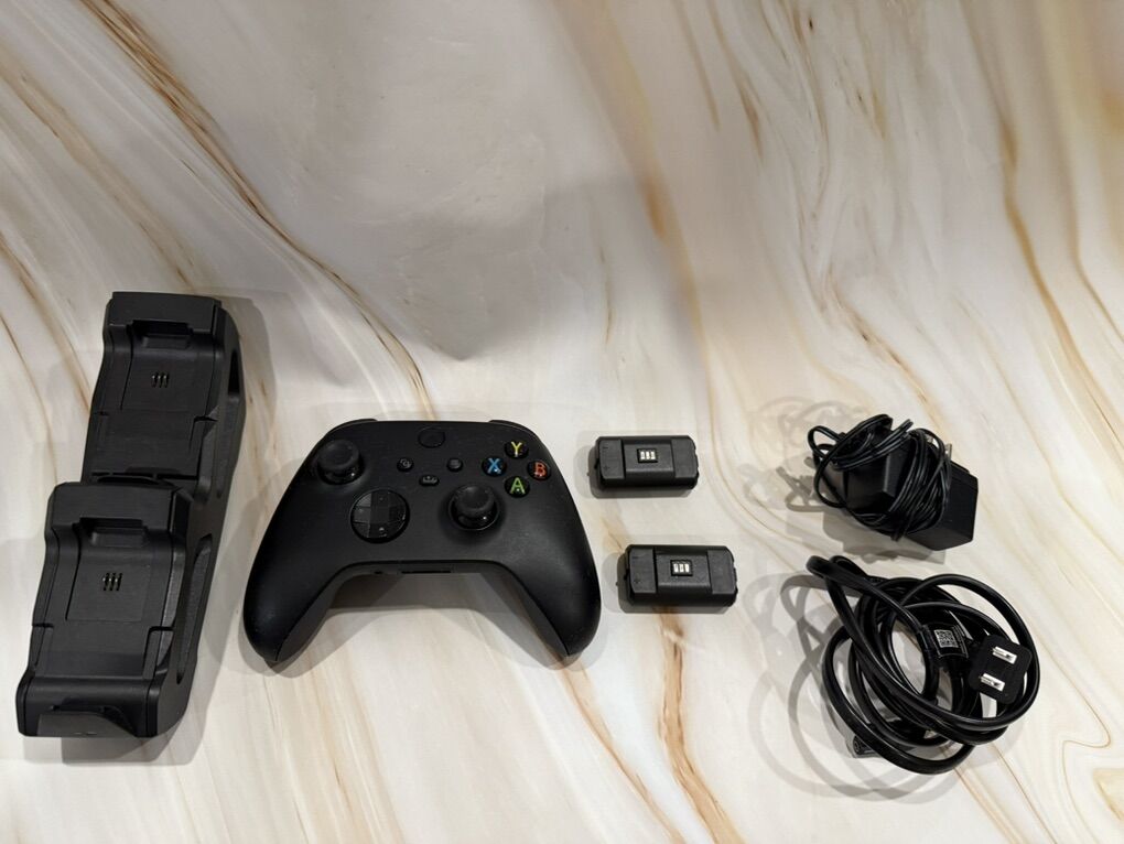 ApplePayComes with a charging stand dock also with rechargeable batteries for the controller. Works amazing like new.