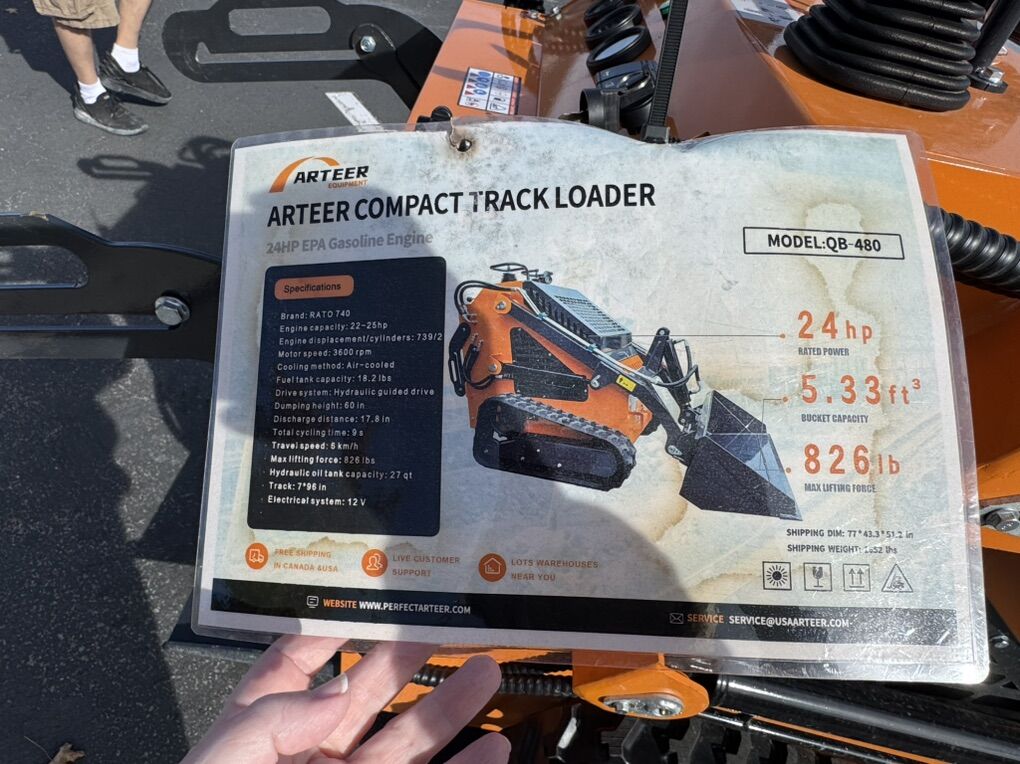 The Arteer 2025 QB-480 mini skid steer is a compact, tracked loader powered by a 23hp V-twin gas engine, designed with joystick steering and a 826 lb lift capacity. Any questions are welcomed. Thank you so very much for looking.