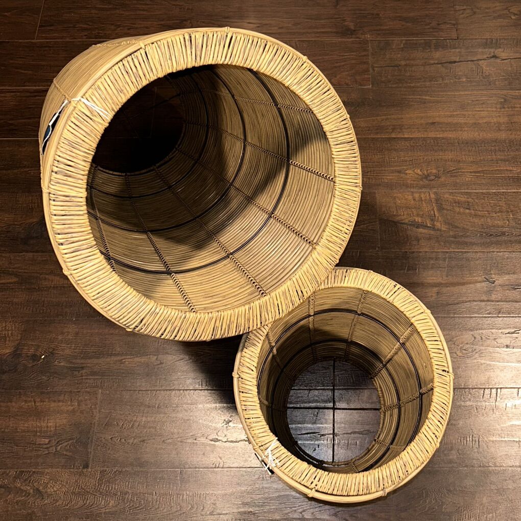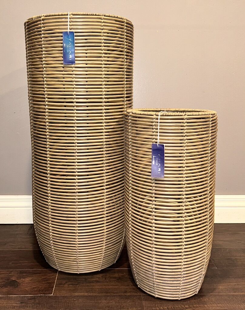 New set of 2 tall Tahari Home rattan wicker planters. Gorgeous high end set suitable for indoor or outdoor use. Text preferred or leave a voicemail and I’ll get back to you. Check out my other listings open to offers.