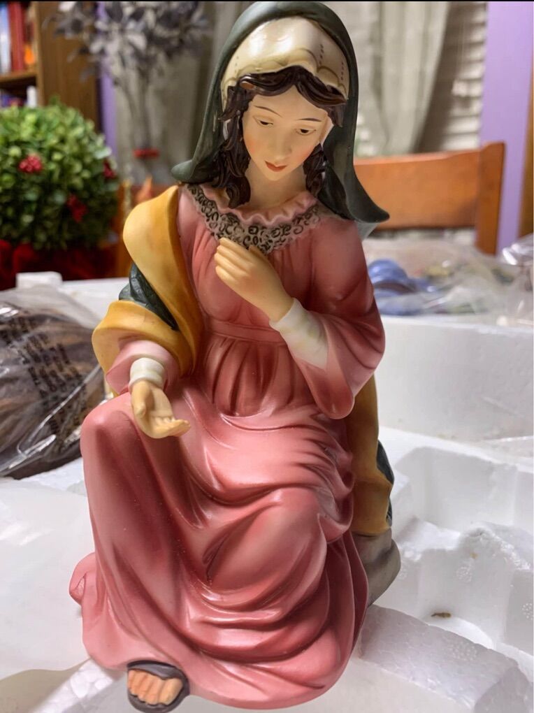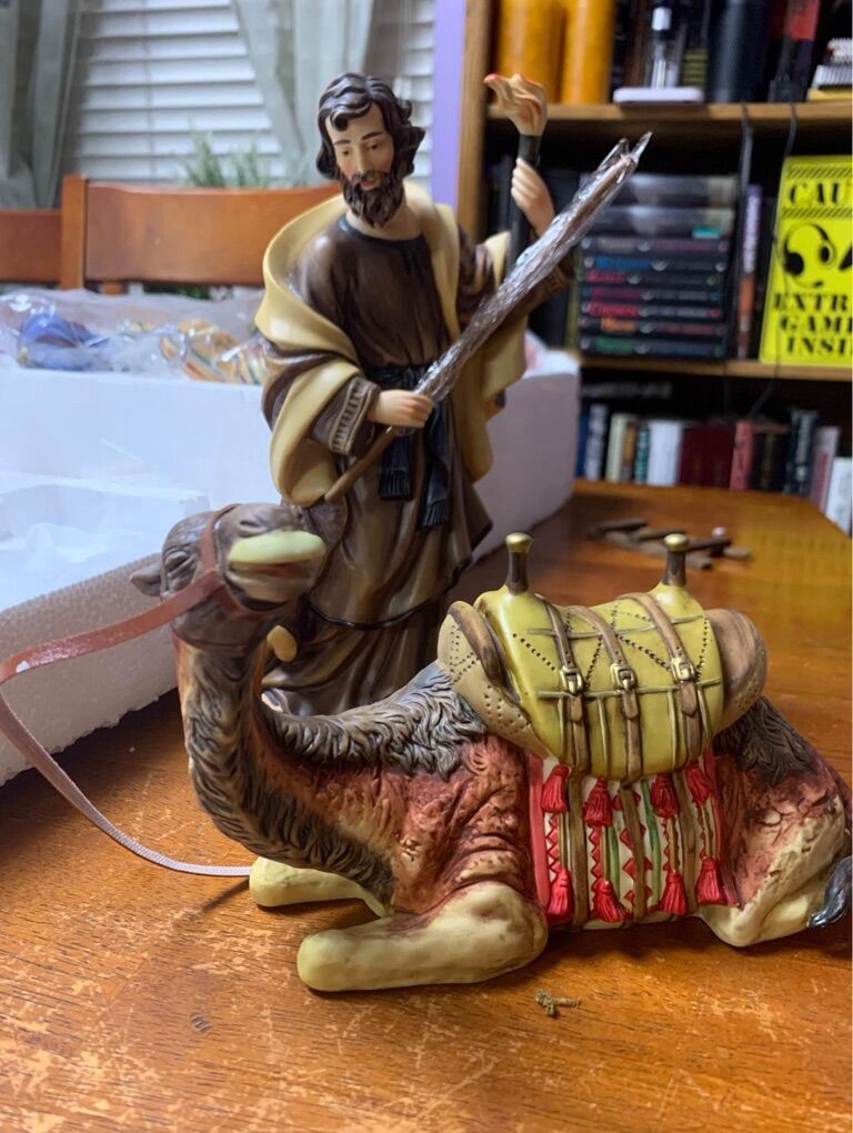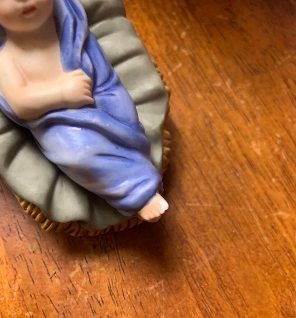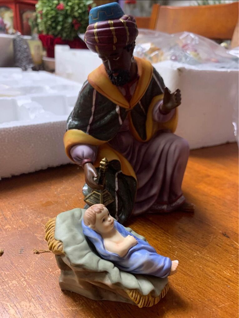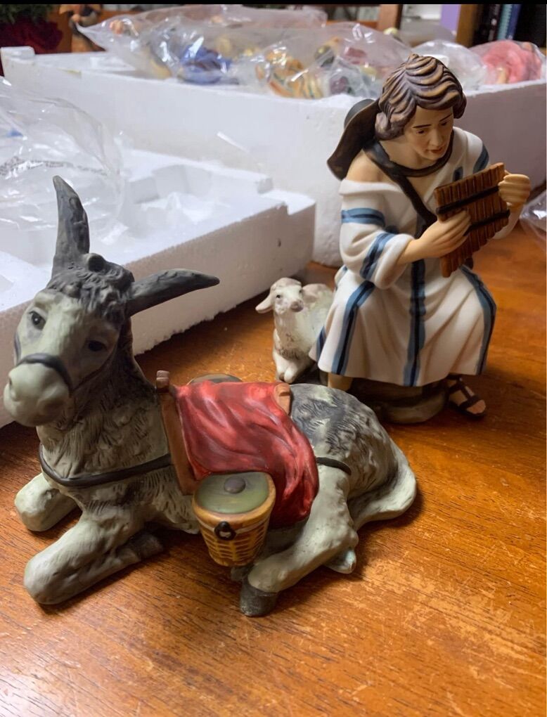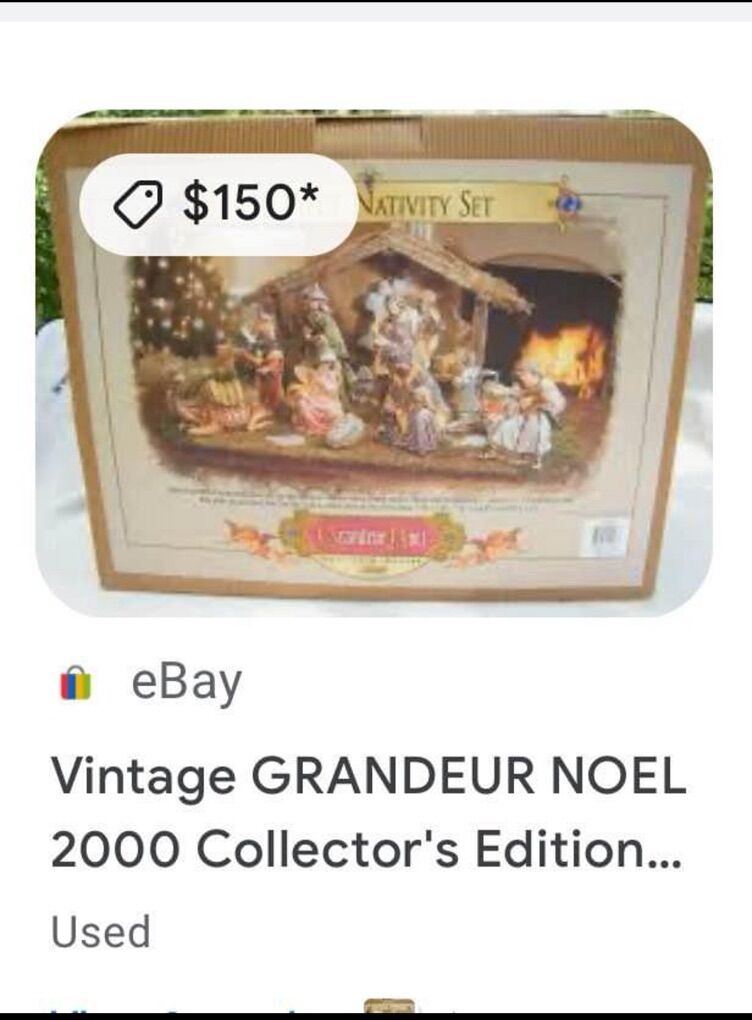 This is a Grandeur Noel 2000 Collector's Edition, 10 piece Christmas Nativity set. Everything comes as shown in the original box, with the packing and instructions. Something you will be proud to display. Note- There is a tiny chipped on baby Jesus toe. See picture Other than that is in great condition!