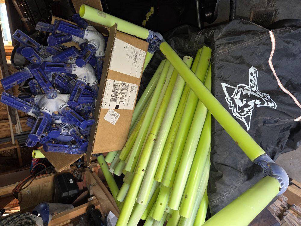Venmothis is a smaller dome, made of plastic. All three pieces are there. there are a few missing the lock pin but when it was together it wasn't noticeable. one bottom bracket was cracked and repaired and held together well this past summer.