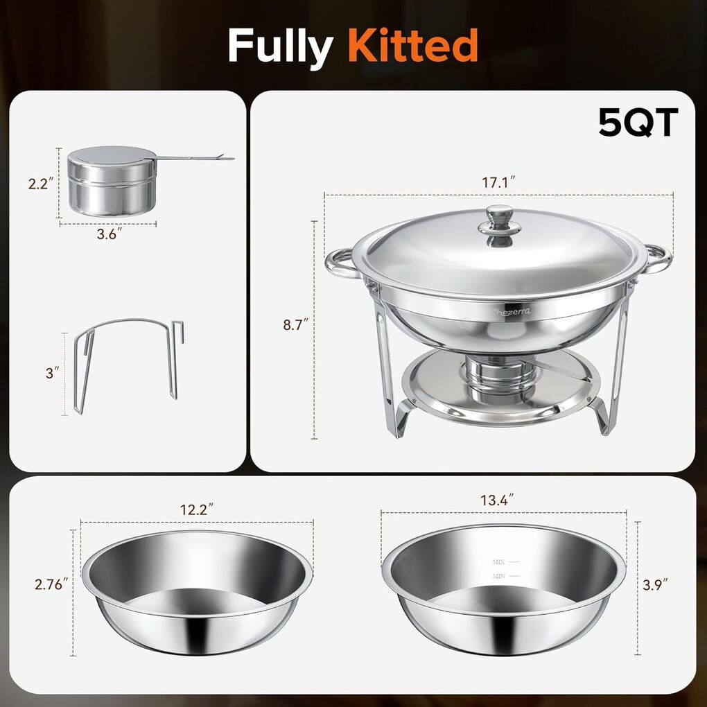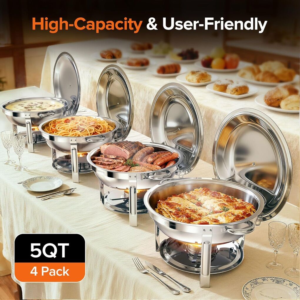VenmoBrand new, Chafing Dishes for Buffet, 4 Pack 5QT Round Stainless Steel Chafing Dish Set with Lid Holder for Home Parties, Christmas Gatherings, Catering Events, Complete Buffet Warmer Set - Silver