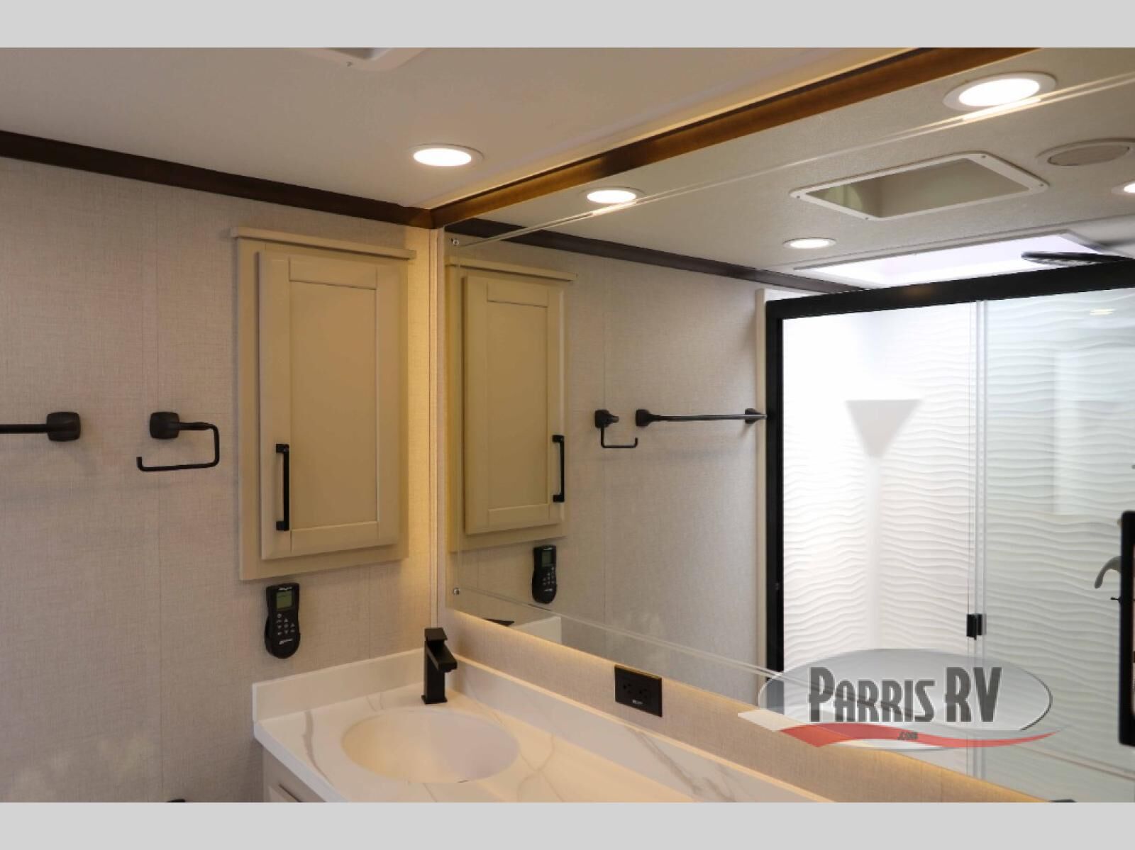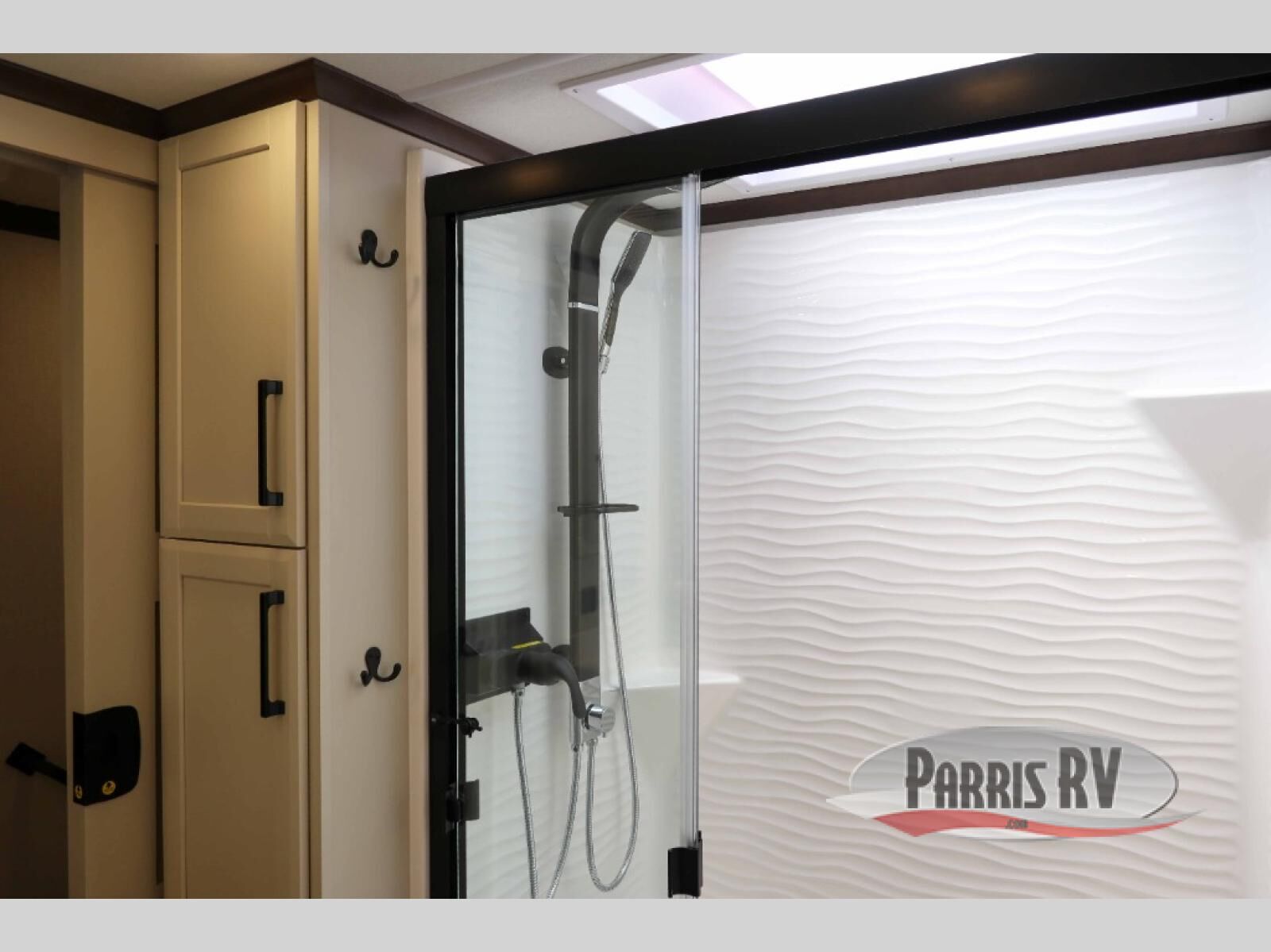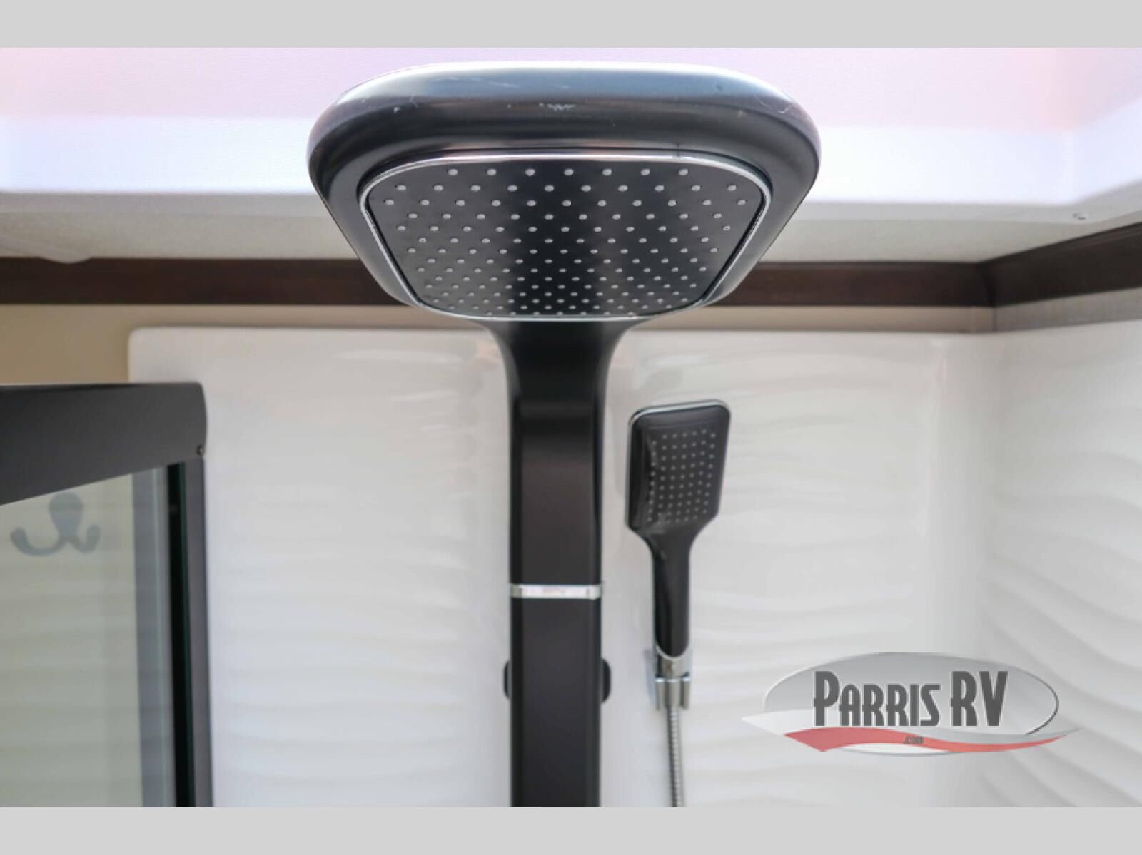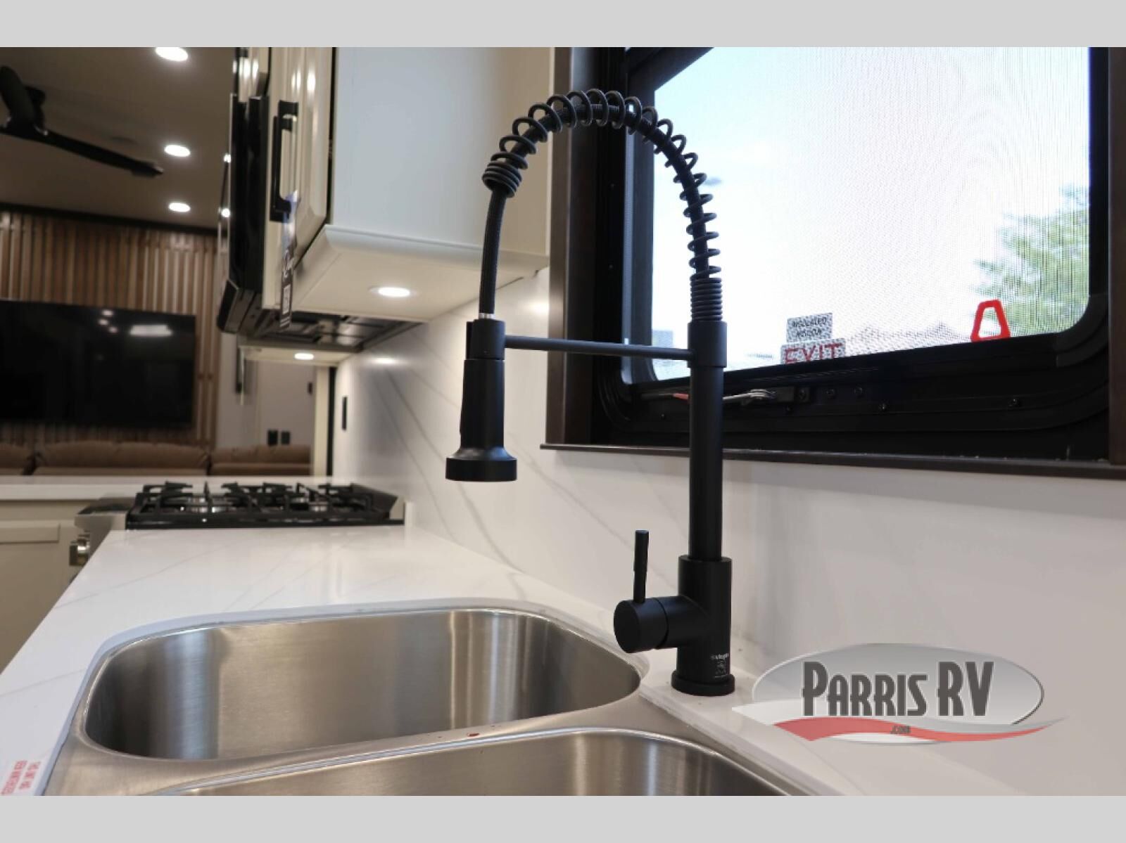 Step into luxury with this fifth wheel, where a high-end design, smart amenities, and functional living combine for an unmatched fifth wheel experience. As you enter you will find yourself in a spacious Kitchen for serious cooking: solid surface countertops, a full 18 cu. ft. french door refrigerator with ice maker, large stainless steel sink and residential-style faucet. Find yourself five slides that will create room for comfortable seating while you cozy up by the fireplace and watch your favorite movie or be as productive as you'd like with the slide out desk space. After a long day of travelling you will surely love to the front bedroom featuring a 72 x 80 king bed to finish your day with a good night's sleep.