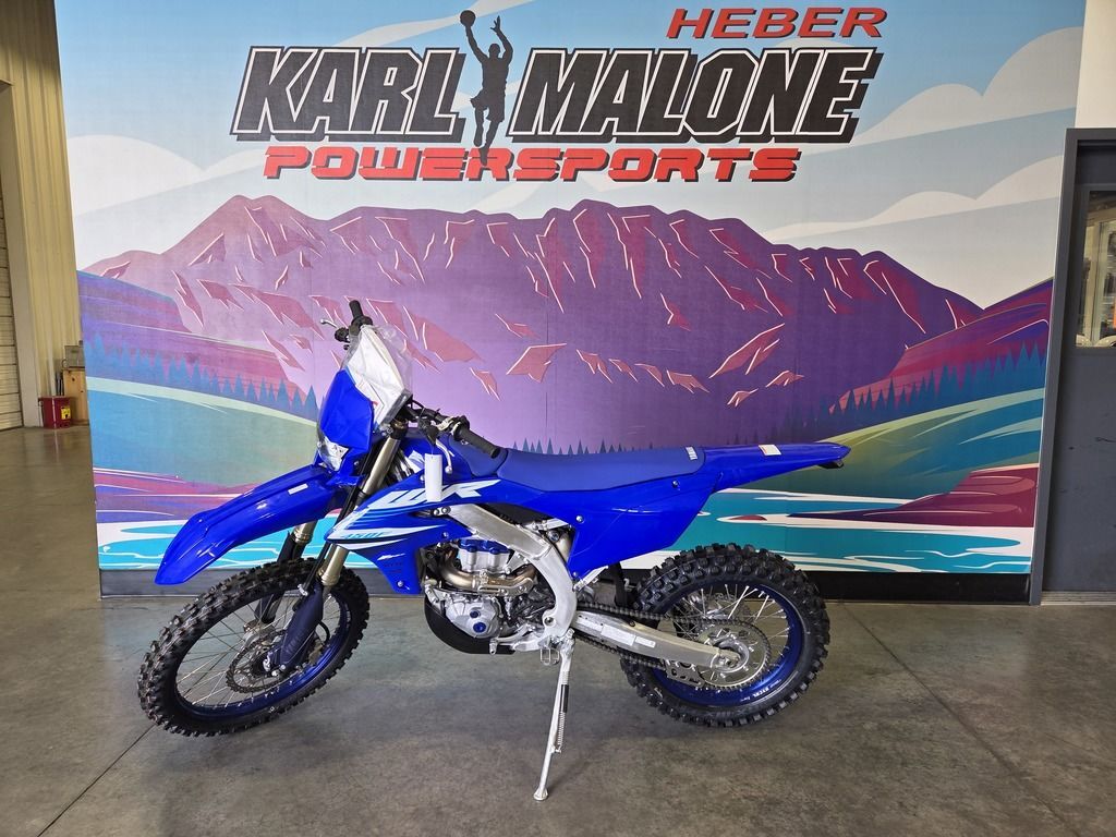 2025 Yamaha WR450F MASTER OF ALL TRADES Lighter, lower, slimmer and more tractable with longer, stronger pulling power. From tight, technical terrain to fast, open fire roads, the versatile WR450F is an off-road master. Features may include: TOP FEATURES Powerful 450cc Four-Stroke Engine The light, compact and high revving 450cc engine delivers power across the entire rev range. ECU settings are tailored to suit the specific needs of trail riding and enduro competition. Three-Level Traction Control Three-level Traction Control, lap timer, data logging and helpful setup guides are enabled through Yamaha's groundbreaking next-generation Power Tuner App. Aluminum Bilateral Beam Frame A aluminum bilateral beam frame with WR450F-specific engine mounts provides the right combination of strength and flex for the perfect balance of straight-line stability and cornering performance. The result is a superb-handling machine with light feel, high agility and plenty of traction, allowing the rider to tackle tight, technical courses with supreme confidence. ENGINE High Performance 450cc Four-Stroke Engine The 450cc liquid-cooled DOHC four-stroke engine is light, compact and features strong pulling power across the entire rev range. A high rev limit assists over-rev, further boosting the WR450F's broad power character. Additionally, ECU settings are tailored to suit the specific needs of trail riding and enduro competition. Three-Level Traction Control System A Traction Control System enabled through Yamaha's Power Tuner App communicates wheel slip to the ECU, tuning the engine to maintain ideal rear wheel traction. Three levels can be selected: HIGH, LOW or OFF. Advanced Fuel Injection The engine breathes through a 44mm Mikuni® throttle body fed by a high-pressure electric pump to ensure optimum fuel atomization and power for a wide range of altitudes, weather and riding conditions. CHASSIS/SUSPENSION Aluminum Bilateral Beam Frame Striking the perfect balance of precise cornering performance and handling stability, the aluminum bilateral beam frame consists of more than 10 different aluminum components welded together with WR450F-specific engine mounts. The result is a light feel, great bump absorption and high traction, allowing the rider to enter corners with confidence and many line choices. Class-Leading Suspension The industry-leading, fully adjustable KYB® coil spring-type fork with speed-sensitive damping provides exceptional balance between handling and bump absorption, and now features a new hand operated compression clicker for toolless adjustments. The linkage-type rear suspension uses a KYB® shock with specially-tuned damping characteristics to match the WR450F chassis. Suspension settings contribute to a lower center of gravity for superb cornering performance and rider comfort in technical sections. Slimmer Body & Improved Ergos A slim, compact and flat body eases rider movement for improved control, including more seamless, rounded seat edges, revised side covers and narrow front shrouds. The rider triangle provides increased legroom between the seat and foot pegs for enhanced rider comfort.