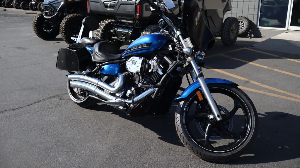 2014 Yamaha® Stryker® TOTALLY CUSTOM - EVEN BEFORE YOU MAKE IT YOUR OWN. With its raked-out front end and “fists in the wind” riding position, the Stryker® is pure attitude. And with an 80-cubic-inch V-twin, and a beautiful final belt drive, it churns out plenty of low-end torque that gets to the ground in a very satisfying way. Key Features May Include: The look reinterprets classic custom “chopper” styling for an aggressive feel. High-end looks without the high-end price tag. Gutsy 1304cc, fuel-injected liquid-cooled V-Twin engine churns out the inspired, big-engine feel riders will love. Even with its radically raked out front end, Stryker has the superbly nimble and lightweight handling that choppers and mid-class competitors can only dream about. Low seat height (26.4 inches) allows riders to put both feet on the ground and helps provide this bike’s natural, relaxed and comfortable riding position. The wide 210-series rear tire and chopper-inspired 21-inch front wheel reinforce the muscular styling of the bike. No cheap plastic fenders here—this authentic cruiser has real steel fenders customizers love. Classic belt drive, too. Get started on your own customization with two trim packages in high-quality chrome, or an aggressive looking, blacked out package. The Star® Accessories Catalog is packed full of high-quality parts that invite Star owners to fully express their individuality. 9.5:1 compression ratio and aggressive cam timing produce plenty of power across the board and a distinctive exhaust note.