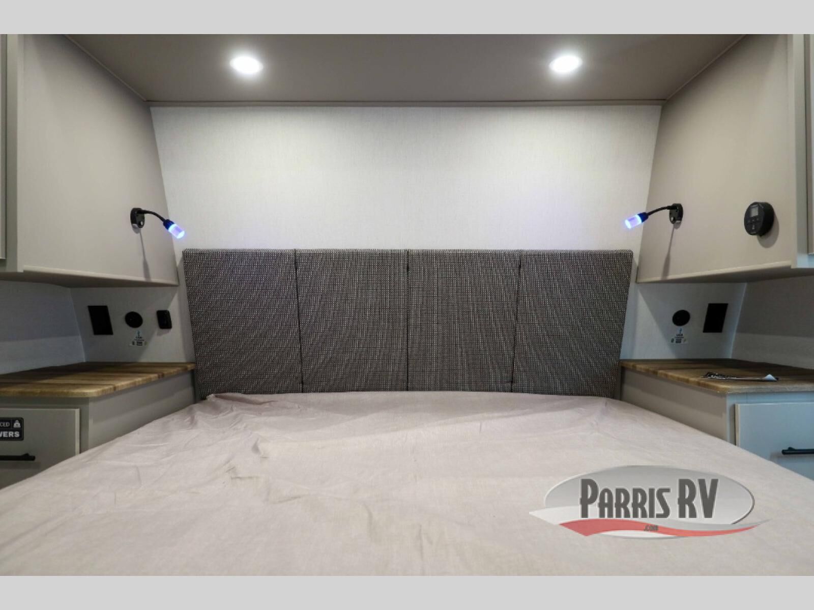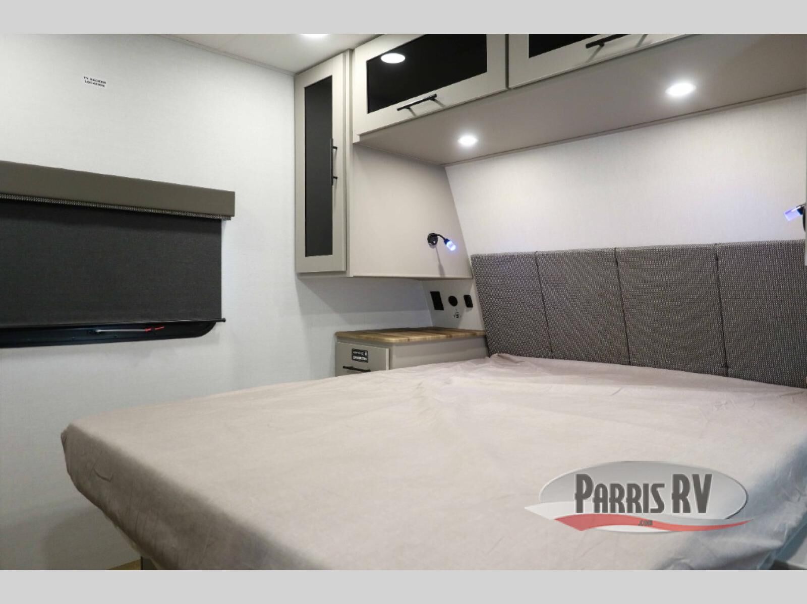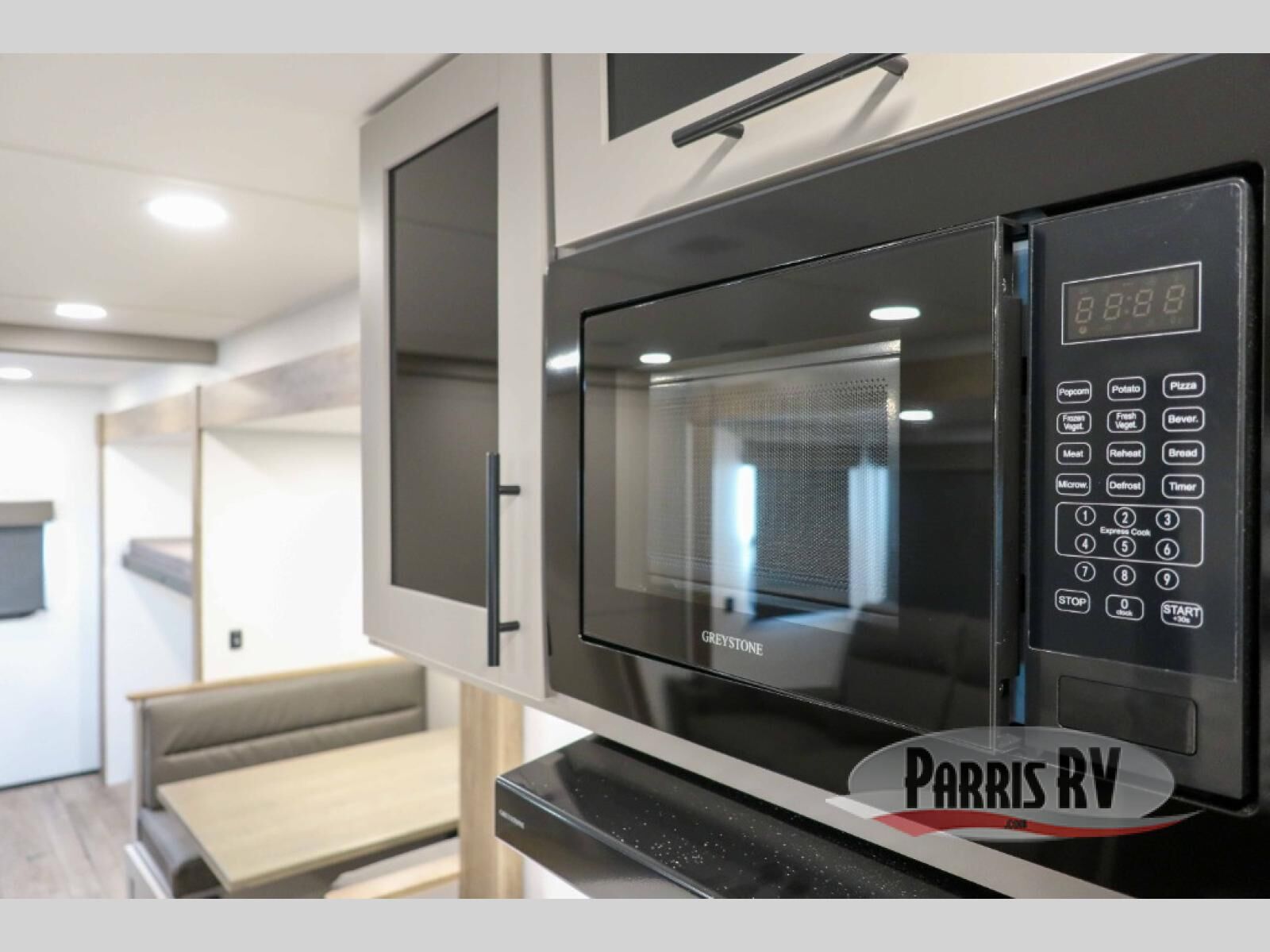Enjoy glamping in this spacious travel trailer for eight! Your guests or the kids will love the rear bunkhouse with 40" x 72" bunk beds across from a third bunk with a cube sofa below, and the slide out will make this space more open. The slide out also includes the booth dinette in the main living area, which is across from the sofa slide out. The chef will love cooking in this Delta kitchen with generous counter space, a 10 cu. ft. 12V refrigerator, plus pull-out pantry trays for dry goods and snacks. The full bath with a 30" x 36" shower and a soft close porcelain foot flush toilet will allow you to fresh up each day without having to use the camp's facilities. And don't overlook the front private bedroom with a queen bed, wardrobe nightstands, a third wardrobe plus overhead storage; now nothing has to get left behind!