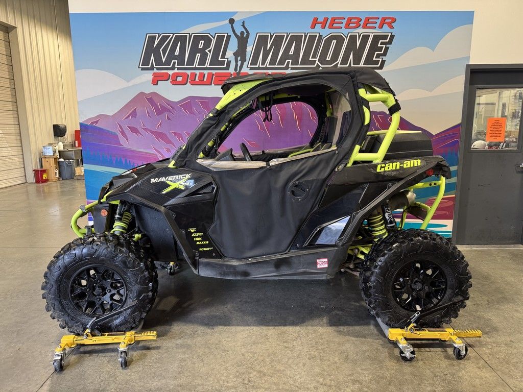 2015 Can-Am® Maverick™ X® ds 1000R Turbo Carbon Black & Manta Green There's no Such thing as too much power. The first factory-installed turbo delivers 121-hp, giving the Maverick X ds the clear power advantage with 40% more torque than its closest competitor. The clutch was also completely redesigned with a new Quick Response System (QRS) for better power transfer. The CVT airflow has been improved by modifying the inlets and outlets and by adapting the design of the impellers, resulting in 68% more cold air flowing through the pulleys. Features May Include: Turbocharged, 121-Hp Rotax® 1000R V-Twin Engine Option Boosting the performance of the proven Rotax 1000R engine with the industry's first factory-installed turbocharger enables the Maverick X ds to produce an impressive 121-HP. The electronically controled wastegate automatically adjusts boost pressure for optimal performance in any condition and even maintains full performance at altitudes up to 5,000-ft. Paired to the turbo is an air-to-air Intercooler with built-in fan to keep cooled air flowing to the engine even in the most demanding conditions. To keep up with the added pressure in the engine, new low pressure forged pistons have been added for long-lasting performance. Finally, the new high capacity injectors ensure a better fuel delivery, providing an optimal air/fuel mixture to improve performance. High Airflow Airbox Keeping the engine breathing cool and clean air is a key factor for high-performance, so a large Donaldson airbox has been positionned close to the engine for maximal airflow. This airbox and filter setup is made for high airflow capabilities to meet the turbo's demand in clean air, even in the most extreme conditions. New plenum efficiently manages turbocompressed air to obtain optimal performances. QRS CVT transmission The CVT system was also reconfigured for the increased power of the turbocharged engine. It features a completely redesigned driven pulley with a new Quick Response System (QRS) and an improved drive pulley. The new design reduces friction, providing an instant response and an optimum belt clamping for better power transfer. The CVT airflow has been improved by modifying the inlets and outlets and by adapting the design of the impellers, resulting in 68 percent more cold air flowing through the pulleys. Intelligent Throttle Control (ITC) The electronic throttle-by-wire system works in conjunction with the 54mm Bosch8 throttle body to produce a smooth delivery, even if the driver's foot is bouncing due to rough terrain. The iTC system, which includes a progressive and Sport modes, detects unwanted bounces and filters the input. 625-W Magneto This package provides a more powerful magneto with 625-W output. Whether it is to install a high-performance lighting or a ground-shaking sound system, this larger magneto can handle it. Redesigned Torsional Trailing A-Arm Rear Suspension (TTA) With 16-In. Of Travel The innovative Torsional Trailing A-arms (TTA) rear suspension is a compact version of a five-link suspension featuring no bump steer and low scrub. This all translates to a more controlled wheel movement, optimal bump absoprtion and tire-to-ground contact for predictable handling. Compact design means low unsprung weight for quicker suspension reaction to changing terrain. Its 16 inches of travel will provide a smooth ride at hard-charging paces or in technical terrain. Double A-Arm Front Suspension The redesigned double A-arm front suspension features 15-in. of travel for a capable and precise ride.
