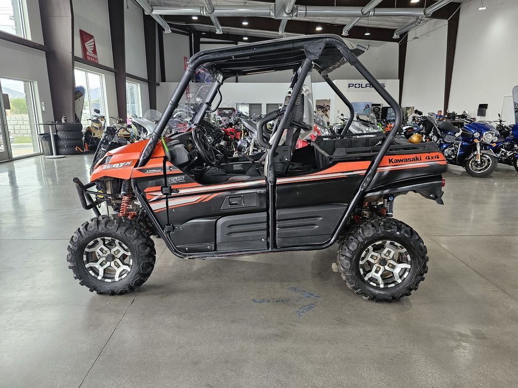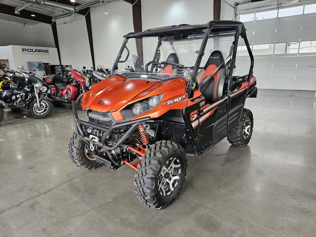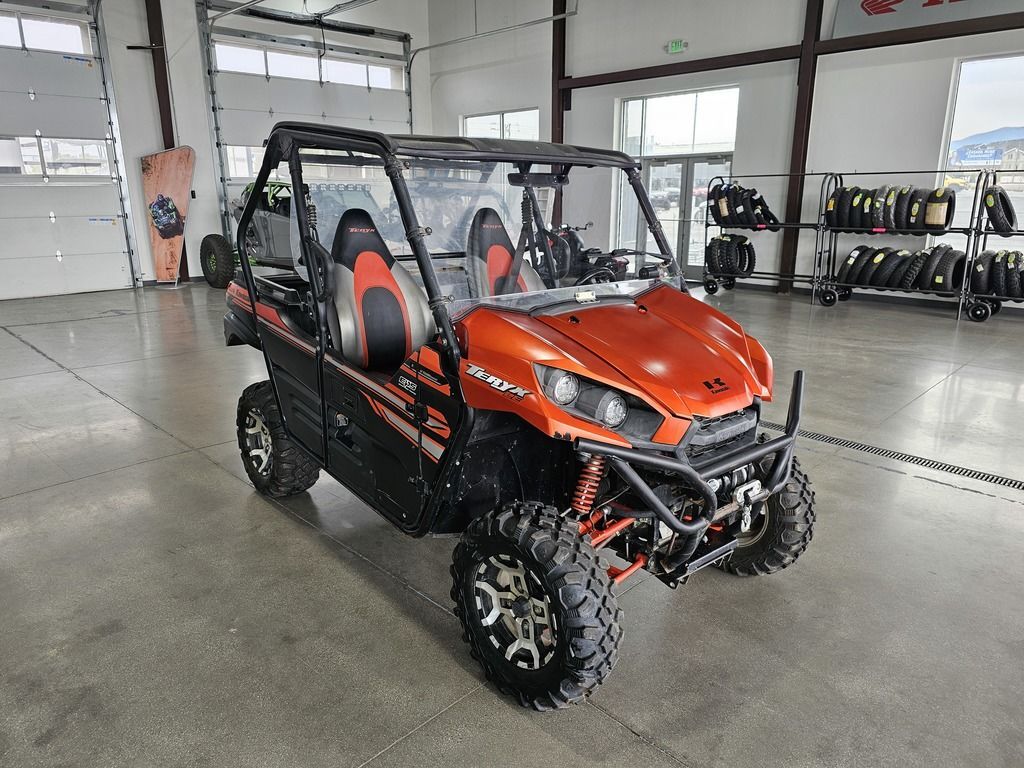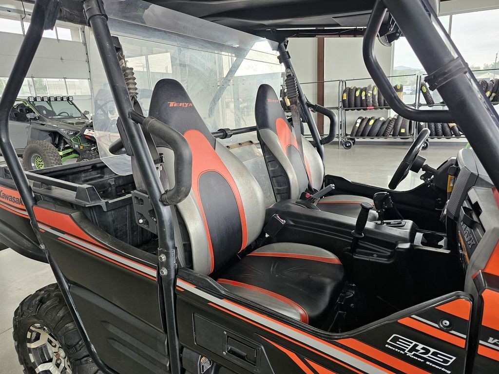 Used 2017 Kawasaki Teryx LE Side by Side UTV For Sale In Salt Lake City, UT This Pre-Owned 2017 Kawasaki Teryx LE Side by Side UTV is for sale at Karl Malone Powersports SLC conveniently located in Salt Lake City, Utah. Our knowledgeable team is eager to assist you, so don’t hesitate to contact us today to schedule an appointment. If this isn't the exact Kawasaki Side by Side UTV you're looking for don't hesitate to go back and revise your search. We're sure to have the perfect Side by Side UTV for you in our showroom in Utah. We invite you to visit us at Utah’s premier Kawasaki dealer for new and pre-owned Side by Side UTVs for sale. Let us help you find the ideal Side by Side UTV to take home today! Karl Malone Powersports SLC Address: 1379 W 3300 S, Salt Lake City, UT 84119 Phone: (801) 972-8725 2017 Kawasaki Teryx LE THE KAWASAKI DIFFERENCE KAWASAKI STRONG Known for its legendary V-Twin power and versatility, the Kawasaki Teryx™ is ready to tackle the toughest of obstacles. Built with Kawasaki Heavy Industries Ltd. strength and backed by the Kawasaki Strong 3-Year Warranty, the Teryx side x side is the ultimate off-road adventure partner. Features may include: Aggressive front end styling Optimized settings for Fox Podium 2.0 shocks The Kawasaki STRONG 3-Year Limited Warranty Continuously Variable Transmission (CVT) with confidence-inspiring automatic engine braking performance WORK STRONG. PLAY STRONG. Tilting steel cargo bed holds up to 600 lbs. 2-inch hitch receiver Massive towing capacity of up to 1,300-lbs. DOMINATING POWER ENGINE 783cc V-Twin engine with legendary Kawasaki torque and power CVT Smooth & responsive Continously Variable Transmission with centrifugal clutch. Maintains belt tension for instant throttle response and improved belt life. The CVT's centrifugal clutch enables positive belt engagement providing confidence inspired automatic engine braking performance on challenging descents. UNMATCHED PERFORMANCE Premium Fox Podium shocks improve traction and handling, while dual front disc brakes and a tight turning radius provide unmatched performance. FOX PODIUM PIGGYBACJ SHOCKS FOR IMPROVED TRACTION AND HANDLING DOUBLE-X SEEL TUBE FRAME IS WELDED FOR IMPROVED HANDLING AND DURABILITY SEALED REAR WET BRAKE FOR MAXUM DURABILITY