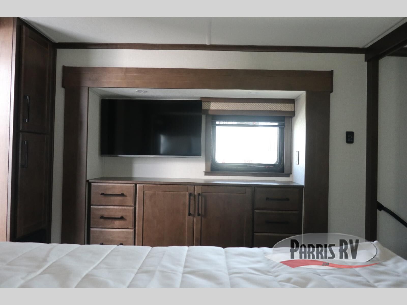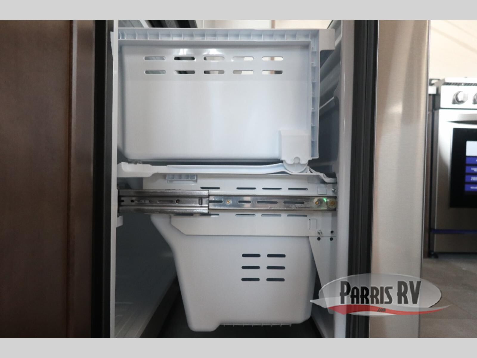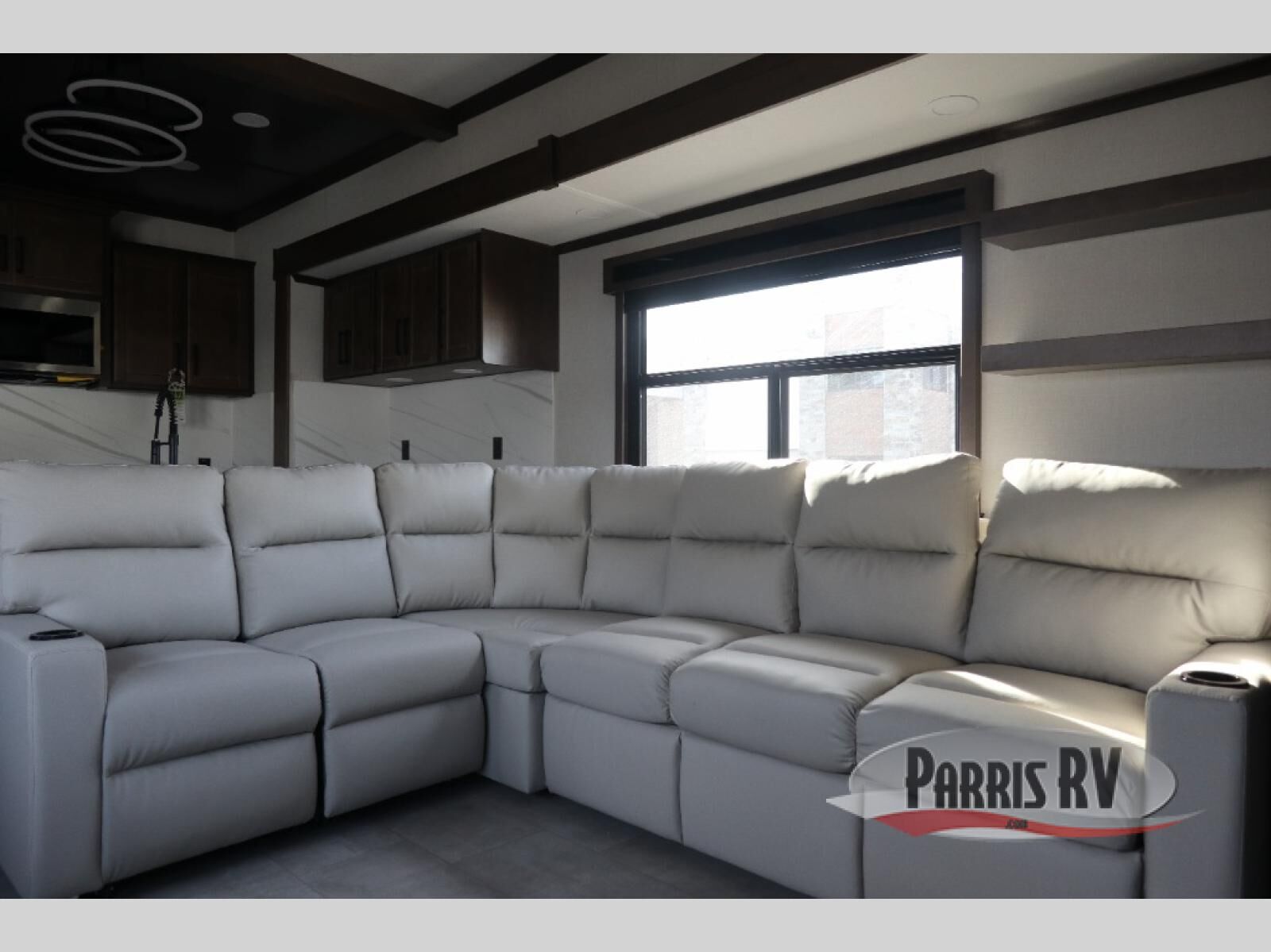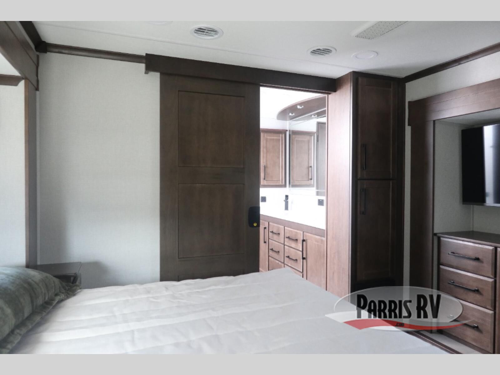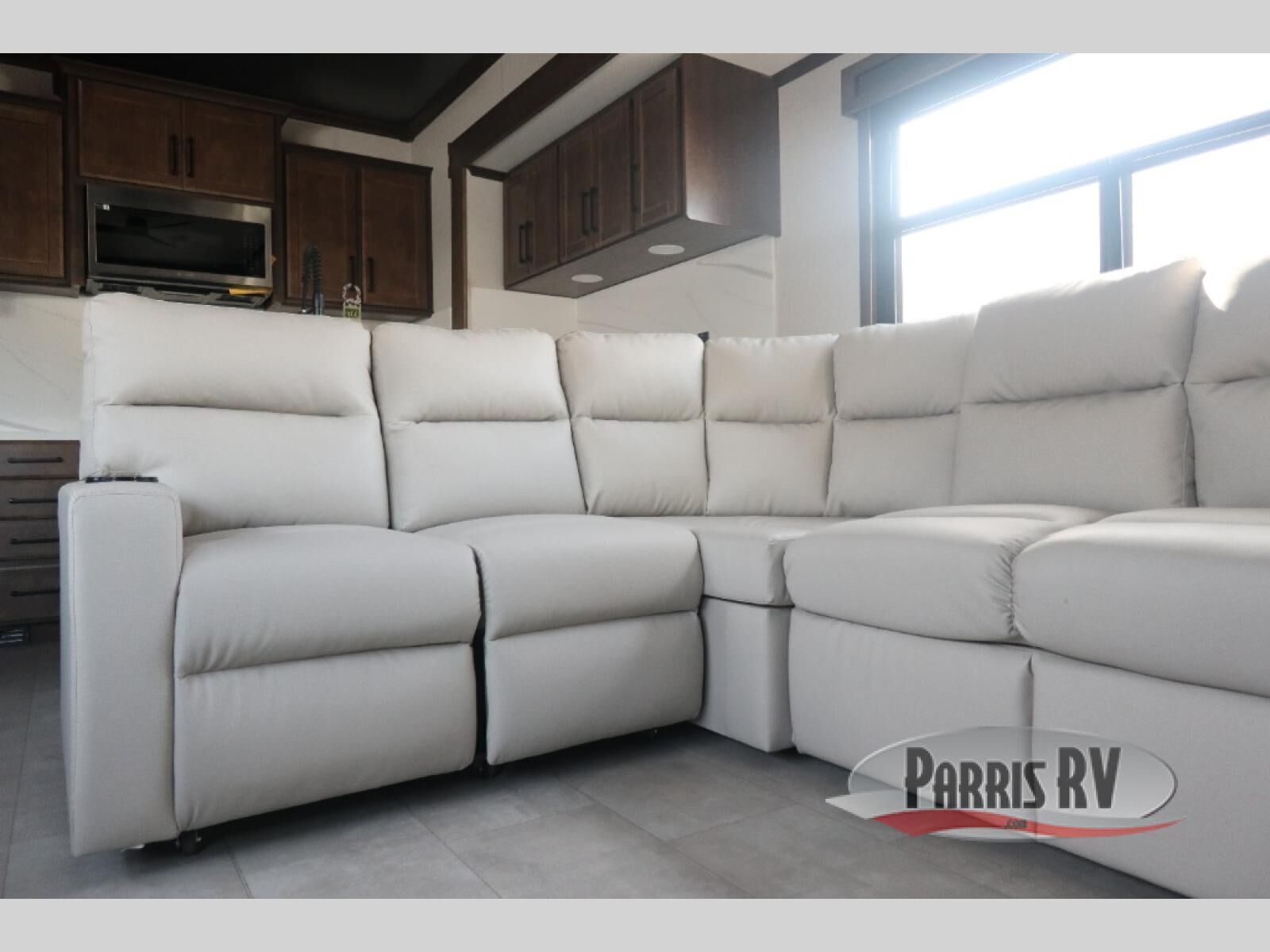 The RiverStone 43BFC isn't just another fifth wheel... it's a residential retreat designed for travelers who want every journey to feel like home. This impressive floor has a designated high-end kitchen space with tons of room, a large pantry, ample counter space and a lovely french door refrigerator will make for unforgettable meals on the go. You can also enjoy a great time with your partner and enjoy all the free time you want at the large sectional sofa you'll never want to leave! After enjoying the living room you will be fascinated by the primary bedroom suite that delivers a quiet, comfortable and spacious sanctuary featuring a dresser and dedicated shoe storage to organize all your personal belongings.