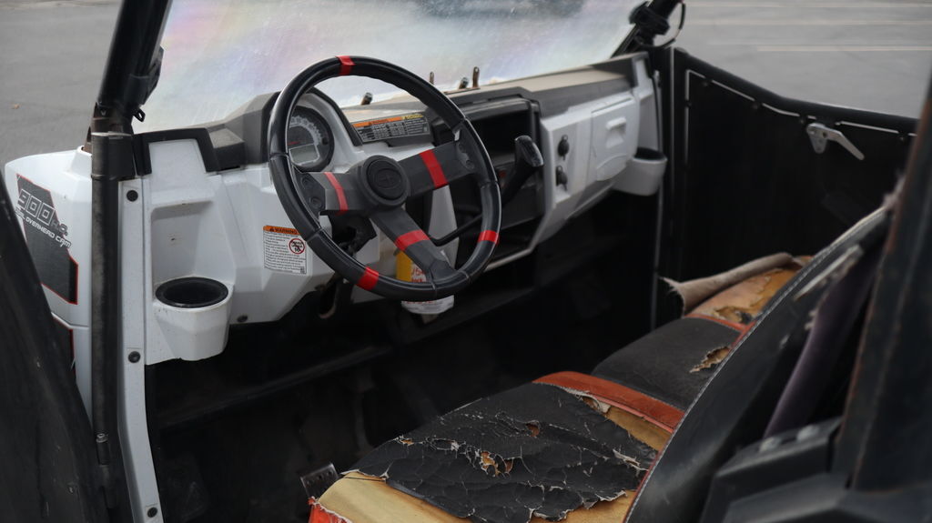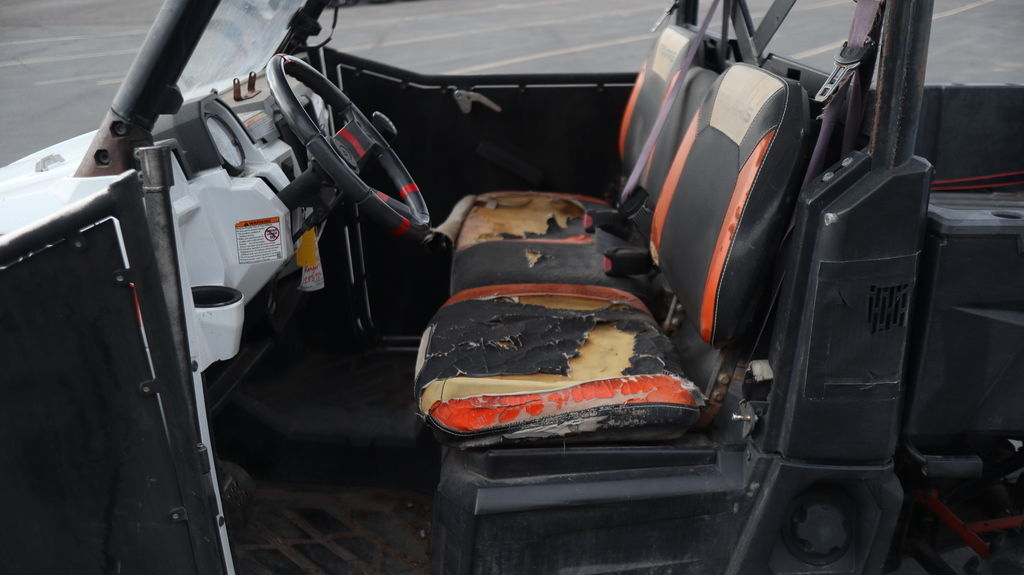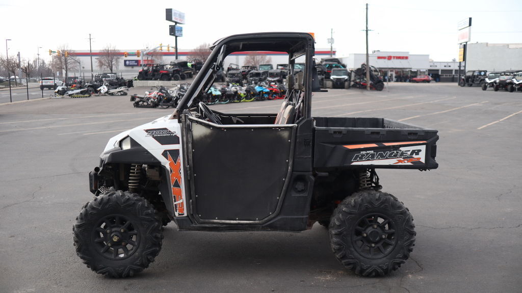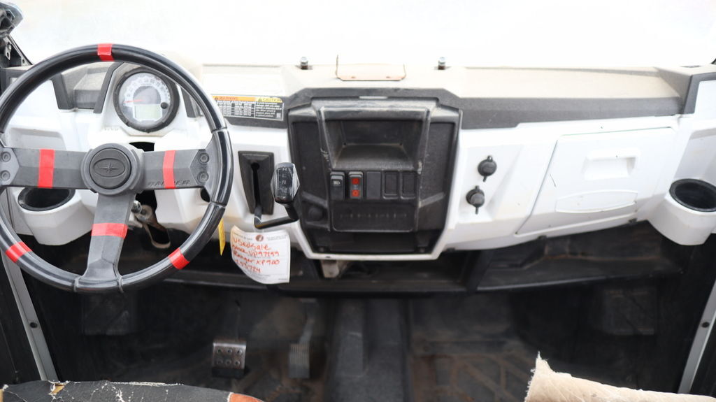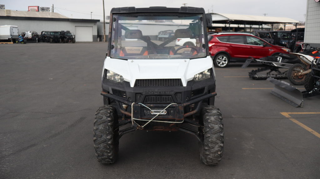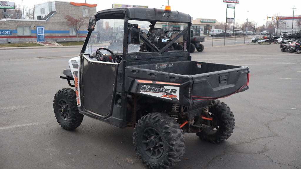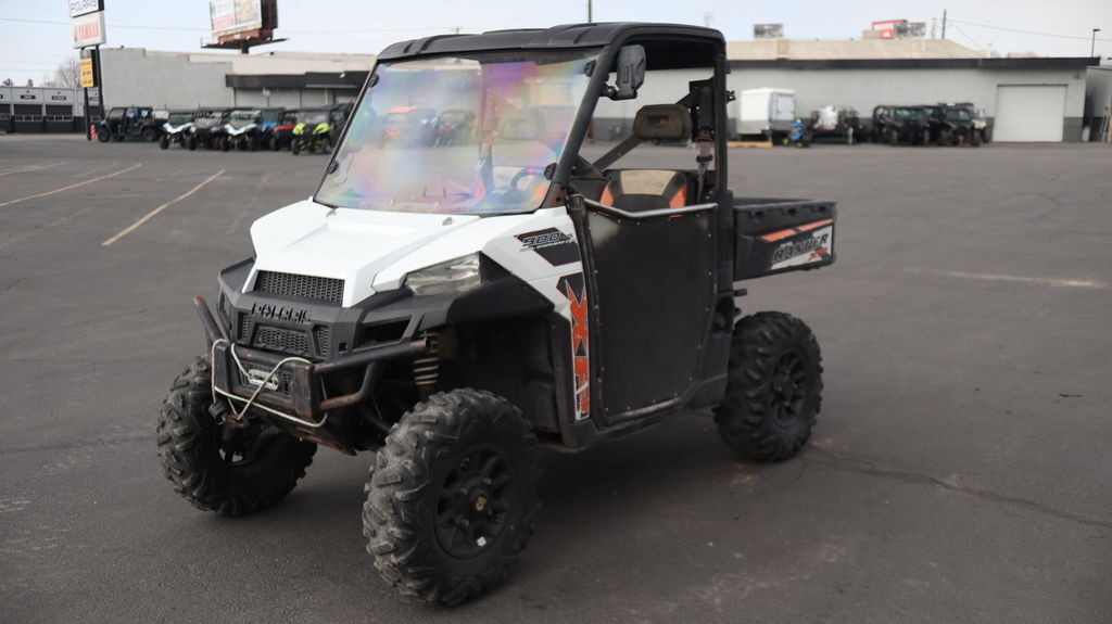 2015 Polaris® Ranger XP® 900 EPS White Lightning Hardest Working Features The ProStar® Engine Advantage The RANGER XP® 900 ProStar engine is purpose built, tuned and designed alongside the vehicle – resulting in an optimal balance of smooth, reliable power. The ProStar XP 900 engine was developed with the ultimate combination of high power density, excellent fuel efficiency and ease of maintenance. On-Demand True All-Wheel Drive With the Polaris true AWD advantage, all four wheels engage automatically when your vehicle needs more forward traction and reverts back to 2WD when it doesn’t. When in 2WD, the VersaTrac Turf Mode switch unlocks the rear differential for easier, tighter turns that won’t tear up your lawn. Engine Management System The engine management system (EMS) delivers optimal torque and horsepower at all speeds and altitudes, plus smooth throttle at all speeds and reverse. The EMS, paired with the ProStar® engine and clutching advantage, also allows for optimal fuel economy. Class-leading Towing and Payload With a monstrous class-leading 2,000 lbs. towing capacity and standard 2” receiver, the RANGER XP 900 allows you to tackle the toughest jobs with confidence. Additionally, a class-leading 1,500 lbs payload capacity is highlighted by a rear box with gas-assist dumping operation that can tote up to 1,000 lbs. of materials and a full-sized pallet Smoothest Riding Features All-Day Riding Comfort We designed the RANGER XP 900 with an ideal seat height combined with wide foot clearance for easy entry and exit. Plus, experience a plush split bench, a full 10 inches of tilt steering adjustment and room for three full-sized adults. Electronic Power Steering The smoothest, most responsive electronic power steering available, with Variable Assist for easier steering at lower speeds. Our EPS lets you work and ride all day with less fatigue. Smooth and Robust Suspension A full 10” (25.4 cm) of Dual A-Arm suspension travel up front and 10” (25.4 cm) of Independent Rear Suspension travel keeps the ride smooth, even when hauling up to 1,500 lbs. (680.4 kg) of payload and towing up to a full ton! Smooth Riding Design Polaris engineers designed the RANGER XP 900 with a perfect balance of smooth riding, handling and turning radius from an ideal 81” (206 cm) wheelbase paired with a full foot (30.5 cm) of ground clearance. Premium PXT Tires and Cast Aluminum Wheels Premium PXT tires mated to cast aluminum wheels for ultimate traction and durability, on the farm, jobsite or trail to the Back Forty. Loaded with Convenience A driver’s side fuel access for the large 10-gallon (37.9 L) tank makes fill-ups on the job or while trailering a breeze. And maintenance has never been easier. To check and fill engine oil, just raise the cargo box. Plus, there are plenty of grease zerks to flush joints of debris. Revolutionary Integration Features Pro-Fit™ Advantage Welcome to the new standard in accessory integration, quality and fit and finish with the industry-exclusive Pro-Fit™ cab system. The highly modular cab system offers cab options from robust canvas doors featuring a poly windshield to premium automotive glass tip-out windshields and power window molded doors. Even better, the purpose built chassis features dedicated component attachment points to allow for extremely efficient cab installation or removal. Leading Storage Solutions With the RANGER XP 900, enjoy a full 37 L of enclosed storage plus plenty of easy-to-access in dash storage that keeps items at the ready when they’re needed
