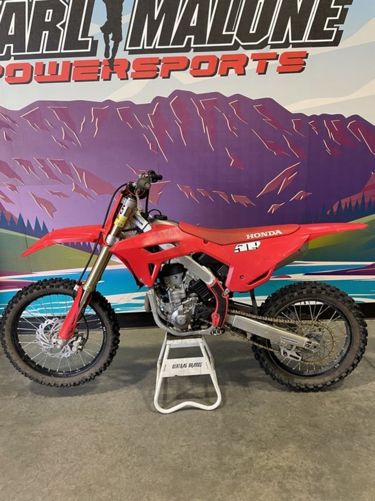 2022 Honda® CRF250R POWER WHERE YOU WANT IT Horsepower is horsepower, right? Anybody who’s ever raced knows it’s a lot more complicated. Where your bike makes its power is at least as important as how much power it puts out. And that’s where our 2022 Honda CRF250R is a real game changer. Because we’ve made some big improvements to this bike’s engine, giving it way more power and torque in the midrange. And that means it’s easier to ride fast, because the midrange is key in critical track sections like whoops, managing jumps, or blasting out of deep loam and berms. And to handle all that extra torque, we’ve also given it a new nine-plate clutch. Finally, there’s the new single-pipe exhaust, a big contributor to the CRF250R’s lighter overall weight. Plus, the pipe’s design helps slim the bodywork so it’s even easier for you to move around. Features may include: ENGINEERING NINE-PLATE CLUTCH ASSEMBLY Say good-bye to clutch fade—the bike uses a nine-plate design to improve durability and hookup. That means less slip at peak horsepower, better torque transmission through the clutch pack and greater durability. Plus, the clutch pull is lighter, and you get improved engagement feel. BIG BORE/SHORT STROKE The CRF250R’s 79.0mm bore and short 50.9mm stroke let our engineers create a high-revving engine with plenty of room for large valves. The engine breathes and revs—the two keys to making power in the motocross world. TECHNOLOGY HRC LAUNCH CONTROL We’re talking about a special ECU program here: push the button to select the mode, hold the throttle open, release the clutch, and the CRF250R will do the rest, launching you into the first turn with a big advantage. It turns your bike into a holeshot-seeking machine! ELECTRIC START The CRF250R is equipped with an effortless electric starter. Convenient and lightweight, it’s a huge deal if you need to restart a stalled bike in the heat of battle. PERFORMANCE MORE MIDRANGE TORQUE AND POWER The key to riding a 250 fast is to keep it in the powerband. The 2022 CRF250R features a new cam, new valve timing, and a new press-fit cam sprocket along with new ignition timing. Together they boost the critical midrange torque and power significantly, giving you the advantage you need. FUEL INJECTION SYSTEM By installing the CRF250R’s fuel injector at a 60-degree angle, the injector sprays fuel all the way back to the throttle butterfly. The engine gets a cooler, denser fuel charge for more power and better torque. It’s little details like this that put the CRF250R up front. HANDLING REVISED FRAME RIGIDITY Great handling starts with a superior frame, and that’s one place where the CRF250R’s chassis puts you out front. First, it’s light—over a pound and a half lighter than the previous generation’s. By making the frame’s main spars narrow, we save weight, but more important we make the chassis more responsive by fine-tuning the lateral rigidity. The result is a bike that gets into, around, and out of corners faster. SHOWA® SPRING FORK The 49mm Showa® fork features a conventional spring design that helps increase the CRF250R’s front-suspension precision, handling and feel. The fork’s 39mm piston diameter and 25mm rod diameter are designed to provide a plush feel and supple action. COMFORT BLACK RIMS They may not help you go faster, but the sweet black DID DirtStar rims sure look good.