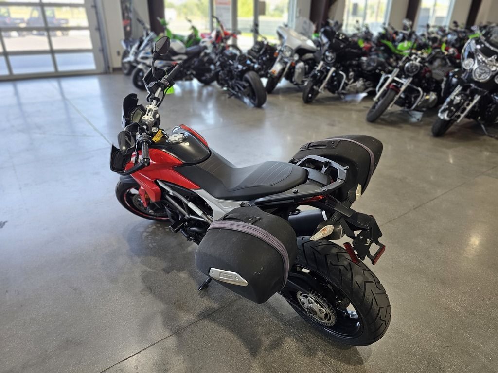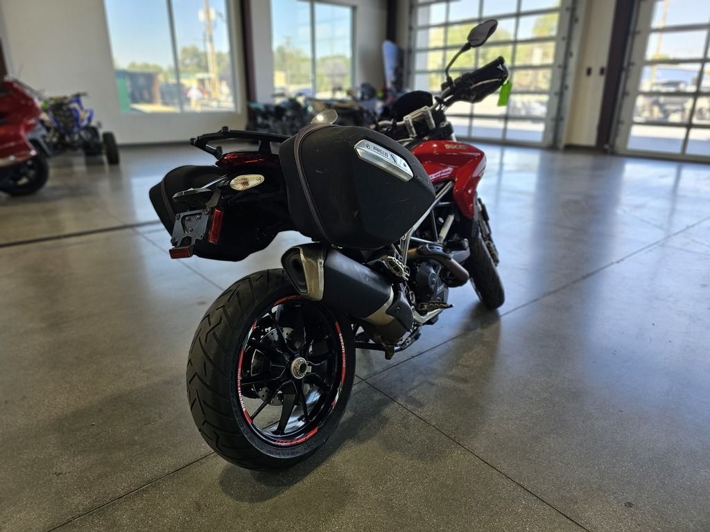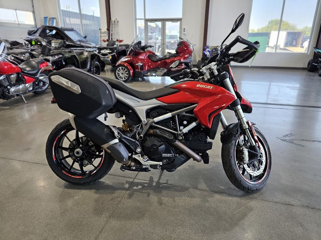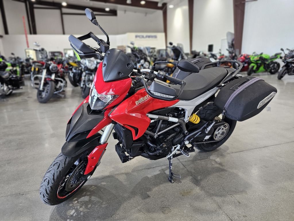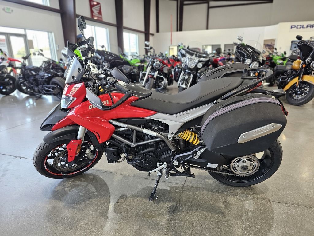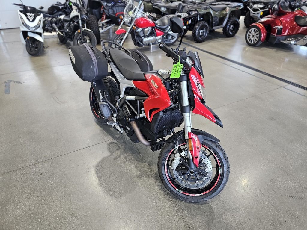 2016 Ducati Hypermotard 939 Red Get hyped Fun has no limits. Powered by the new Testastretta 11° 113 hp engine and with Riding Mode technology, Power Modes and the Ducati Safety Pack with ABS and Traction Control, the Hypermotard 939 turns every road into safely controlled, two-wheeled delight. Combining handling, horsepower and enthusiasm, the Hypermotard 939 brings 100% enjoyment to every ride. New Testastretta 11° The new Hypermotard 939 family utilizes a 4-valve engine with a water-cooled cylinder, featuring a bore x stroke of 94 mm x 67.5 mm designed to achieve a perfect balance between usability and performance: this is the new 937 cc Testastretta 11° engine which provides maximum power of 113 hp @ 9,000 rpm and torque of 97.9 Nm @ 7,500 rpm. This new engine uses technical solutions which directly reflect Ducati's engineering know-how and have led to the creation of an extremely fluid and stable engine: the 11° valve overlap confirms the excellent results obtained in the Multistrada 1200 family and optimizes the exhaust and intake stages with consequent steady operation at medium and low speeds. Targeted fuel injectors aim the jet of fuel directly at the hotter rear end of the intake valve so that all fuel is atomised; a secondary air system similar to that of the 1299 Panigale enables the engine's operation to be optimised thanks to the controlled flow of oxygen which reduces cyclical combustion dispersion, thus effectively eliminating unburnt fuel. Ultimately, Ducati has managed to obtain a new engine that is extremely enjoyable, performs excellently and which can significantly limit emissions of unburnt fuel. New Trellis frame The Hypermotard 939 family of bikes is equipped with a tubular steel Trellis frame with 34 mm main section tubes, 25.5° rake, 104 mm trail and 30 mm offset, dimensions which allow steady and safe control without compromising the agility typical of this motorbike. The frame connects into the seat rail and, as in the Multistrada 1200, includes an intermediate section in engineering polymer. A wide 70° steering angle allows great handling, while a wheel base starting at 1,485 mm maximises stability at high speeds. ABS Bosch 9MP The Hypermotard 939 family is equipped with the latest Bosch 9MP ABS, an integral part of the Ducati Safety Pack. This unrivalled combination of safety and braking power provides shorter stopping distances and greater stability under braking. The system integrates perfectly with the Riding Modes and has two operation levels. Level 1, for Sport Riding Mode, ensures high braking performance with reduced anti lift-up control for sport use on the road. Level 2, for Touring and Urban Riding Modes, offers excellent stability on braking and maximum control over rear wheel lift. Riders who wish to try out unassisted braking performance can disable the ABS from the instrument panel menu. The ABS will remain disabled at the next key-on and this setting can be stored for each Riding Mode. Truly versatile Configure the Hypermotard 939 exactly as you wish to take it just where you want. By fitting one of the specially designed additional packages, your Hypermotard 939 will adjust perfectly to your needs and improve your experience thanks to specific accessories featured in each package. Whether you wish to add a sporting touch, the utility of touring fixtures, convenient urban accessories, or all three, the Sport, Touring and Urban packs are ideal accompaniments to your motorcycle.