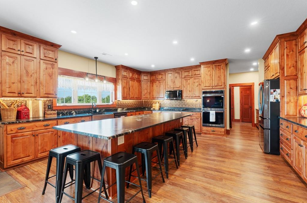 A Country Dream on 68+ Acres in Northwest Missouri! Looking for the perfect mix of wide-open spaces, modern comfort, and a dash of adventure? This stunning estate is just 1¼ hours northeast of Kansas City—and it's a showstopper! Perfectly tucked between Gallatin and Jameson, it's where beauty meets functionality and peace meets play. At the heart is a spacious 4,720 sq ft home that checks every box. The main floor boasts three private bedroom suites (yes—each has its own bath!), including an oversized primary retreat. The open-concept living, kitchen, and dining area is designed for gathering and memory-making. Upstairs is a 1,440 sq ft apartment—complete with kitchen, laundry, master suite, a 10-bed bunk room (sleepovers, anyone?), plus a huge storage room. Even the 1,647 sq ft heated three-car garage is ready for cars, toys, tools, or hobbies. In-floor heating zoned for the house and garage, a propane furnace, on-demand water heaters, and an Amish cookstove ensure warmth and efficiency year-round. Outside, a 70'x80' outbuilding includes a 588 sq ft energy-efficient studio apartment with Murphy bed, full bath, and kitchen with pantry. The same building offers two more bedrooms, another full bath, laundry, a spacious loft, a workshop, and an impressive multipurpose room, a PICKLEBALL court (yes, really!)—plus space for animals or equipment. A second 40'x50' barn is fully insulated with concrete floors for all your projects and passions. For outdoor lovers, there's a 3-acre stocked pond, nearby Grand River, 46 acres of tillable ground providing crop income (currently soybeans, hay/alfalfa), and abundant wildlife—deer, turkey, quail, and more. Whether farming, fishing, riding horses, or simply soaking in sunsets, this property delivers. This isn't just real estate—it's a lifestyle. A peaceful retreat in the heartland where you can work, play, and truly live.