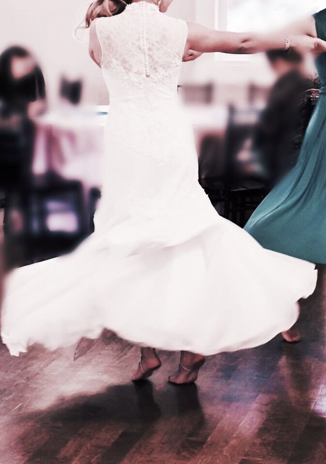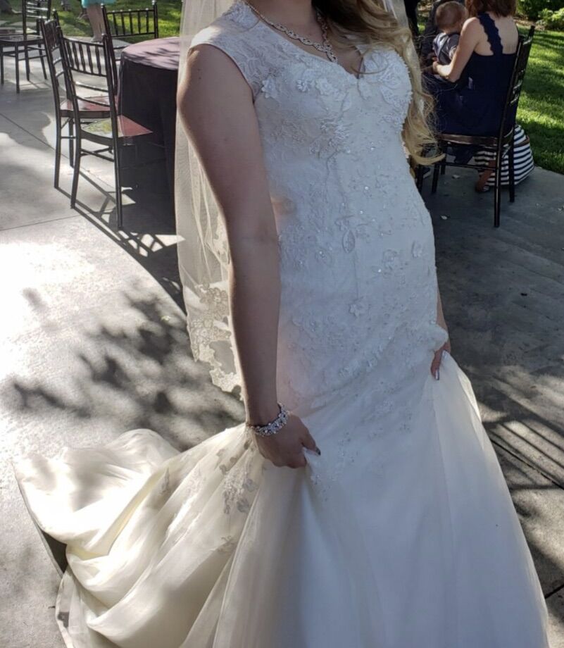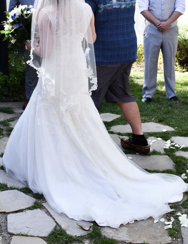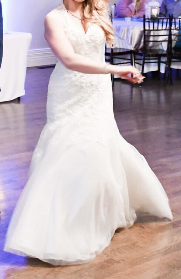 Worn once and preserved by David’s Bridal. Excellent condition.