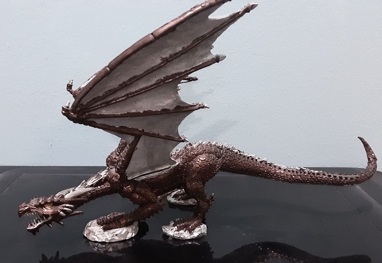 VenmoOr best offer. This is a 100% pewter dragon from Reaper Miniatures. I partially painted it years ago as a bronze dragon, but portions of it still need to be painted. About 9.5 inches long and 6 inches tall at the tallest point of the wings. It has never seen any action as a game piece, but I've marked it as used because of the length of time I've had it and because of the partial paint job. Might need a bit of dusting. You can also paint over it with a different color.