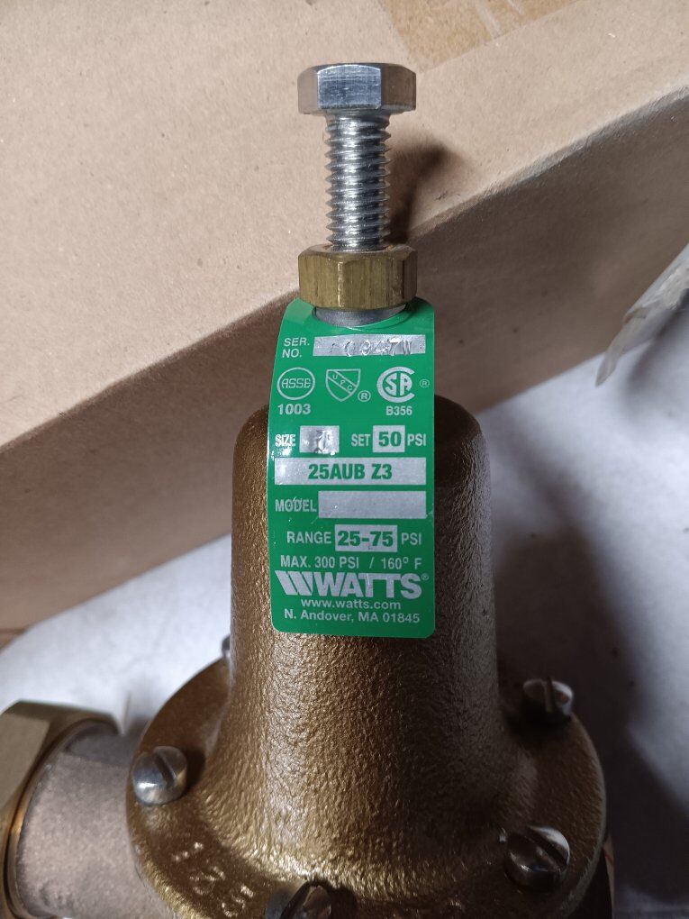 New WATTS Water Pressure Reducing Valve: NPT x NPT, 1 in Pipe Size, Water Pressure Reducing Valve 1 25AUB-Z3 Integral Bypass and Stainless Steel Strainer Factory Set: 50psi Suitable for Outdoor/Waterworks Pit Installation https://www.grainger.com/product/5DMA7?gucid=N:N:FPL:Free:GGL:CSM-1946:tew63h3:20501231&gStoreCode=696&gQT=2 asking price $60 OBO. Please text if interested, thank you for looking.