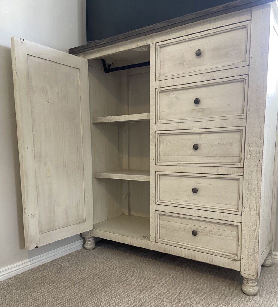 VenmoAdd rustic charm and extra storage to your home with this stunning farmhouse-style armoire. •Dimensions: 60.5”H x 55”W x 23”D\