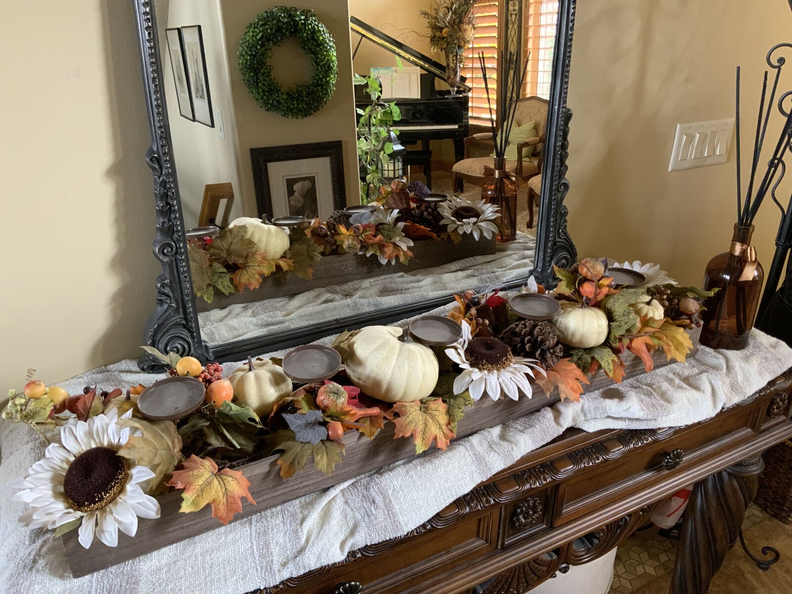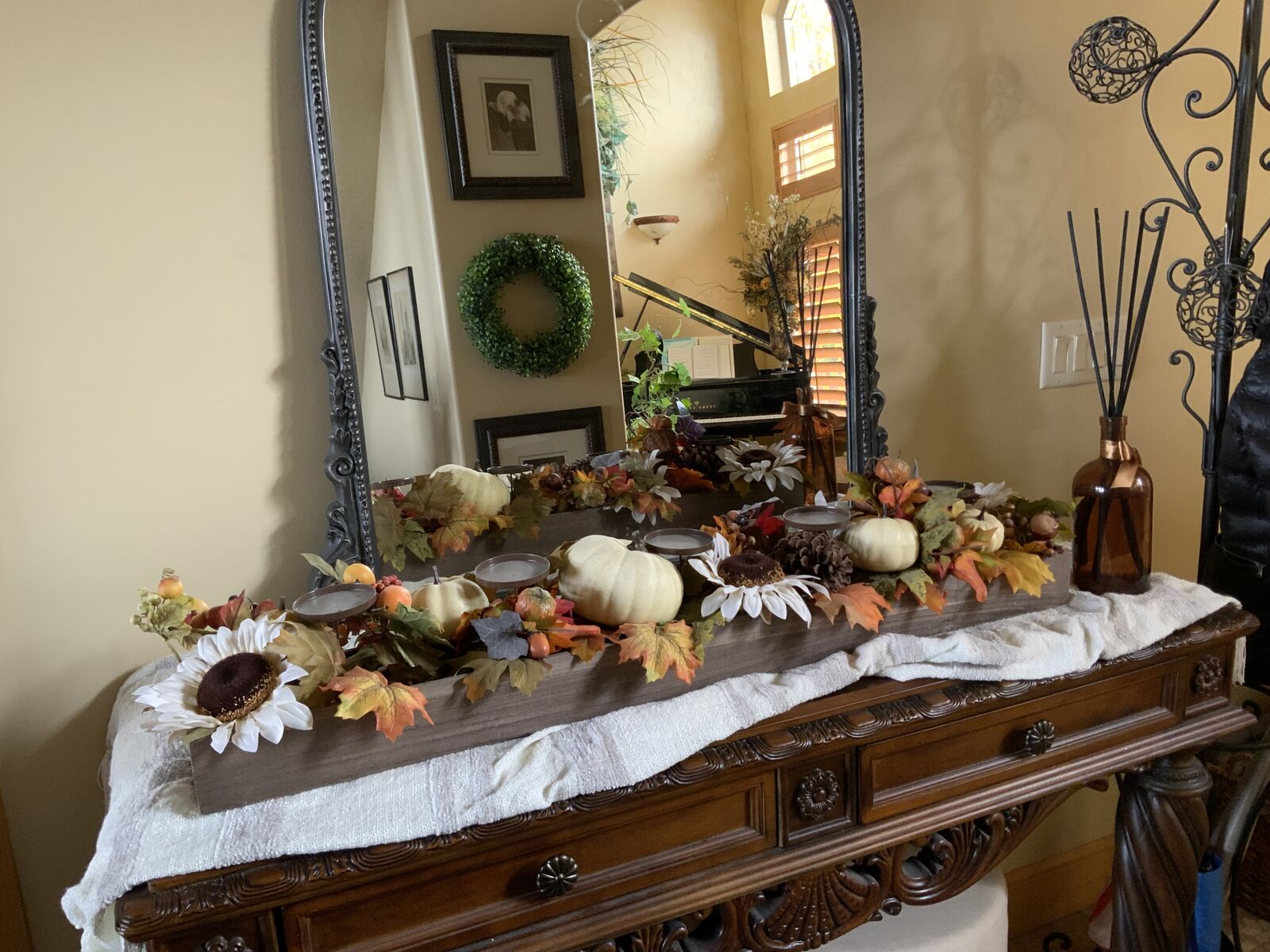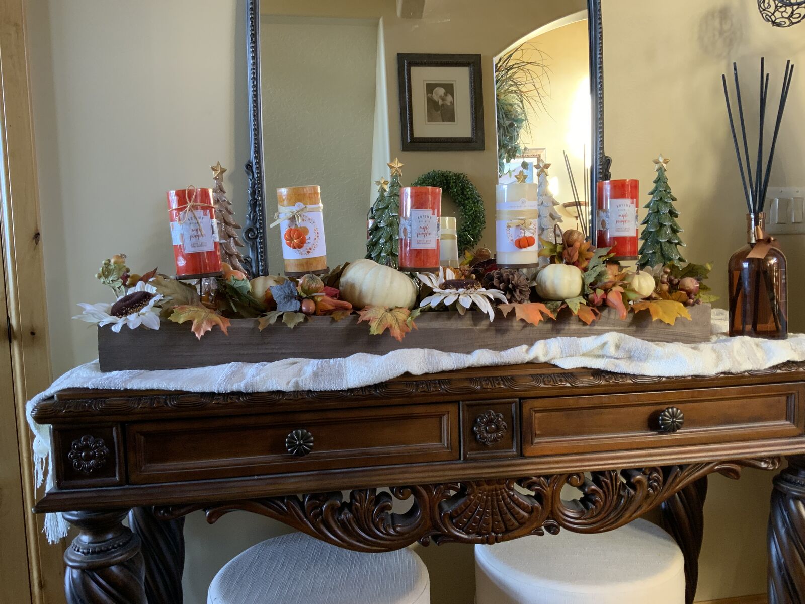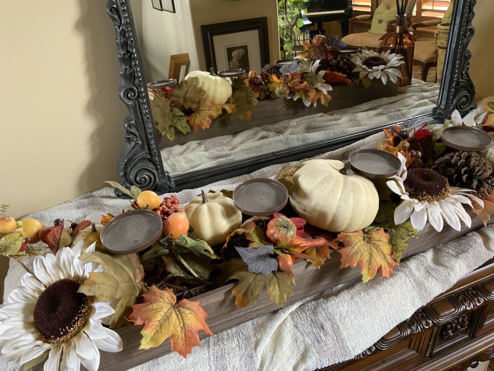 BEAUTIFUL BRAND NEW THANKSGIVING TABLE CENTERPIECE W/SCENTED CANDLES. LENGTH 42”. CASH/VENMO ONLY. IF INTERESTED CALL OR TEXT 801-360-0388