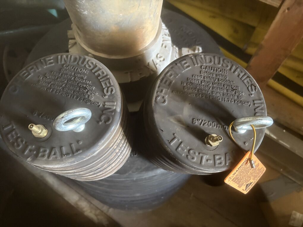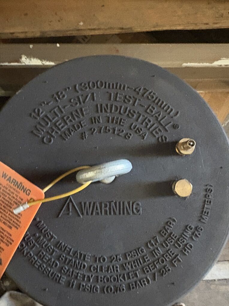 I have some lightly used test plugs- 8, 12-24, 24 30 36 all are Cherne brand the big air bladders are the 30” and 36” size and include the supply lines and gauge. Message me and we can negotiate a price.