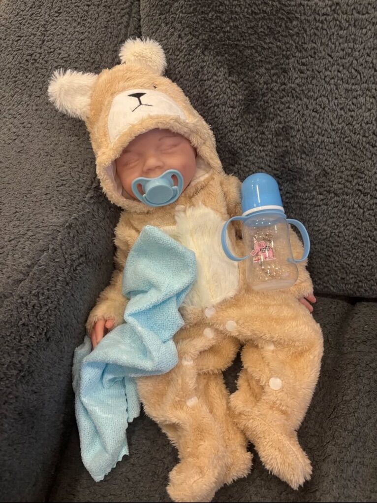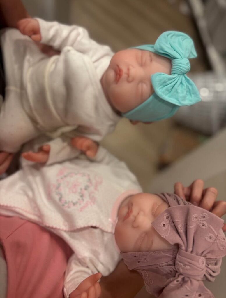 These are full platinum silicone dolls. They are 18” long and weigh 8lbs. And get preemie is 16/17 and 4/5 lbs. They look and feel sooooo real! Floppy limbs, floppy head just like a newborn. They fit newborn and preemie really well. Mouth can open for bottle or binky