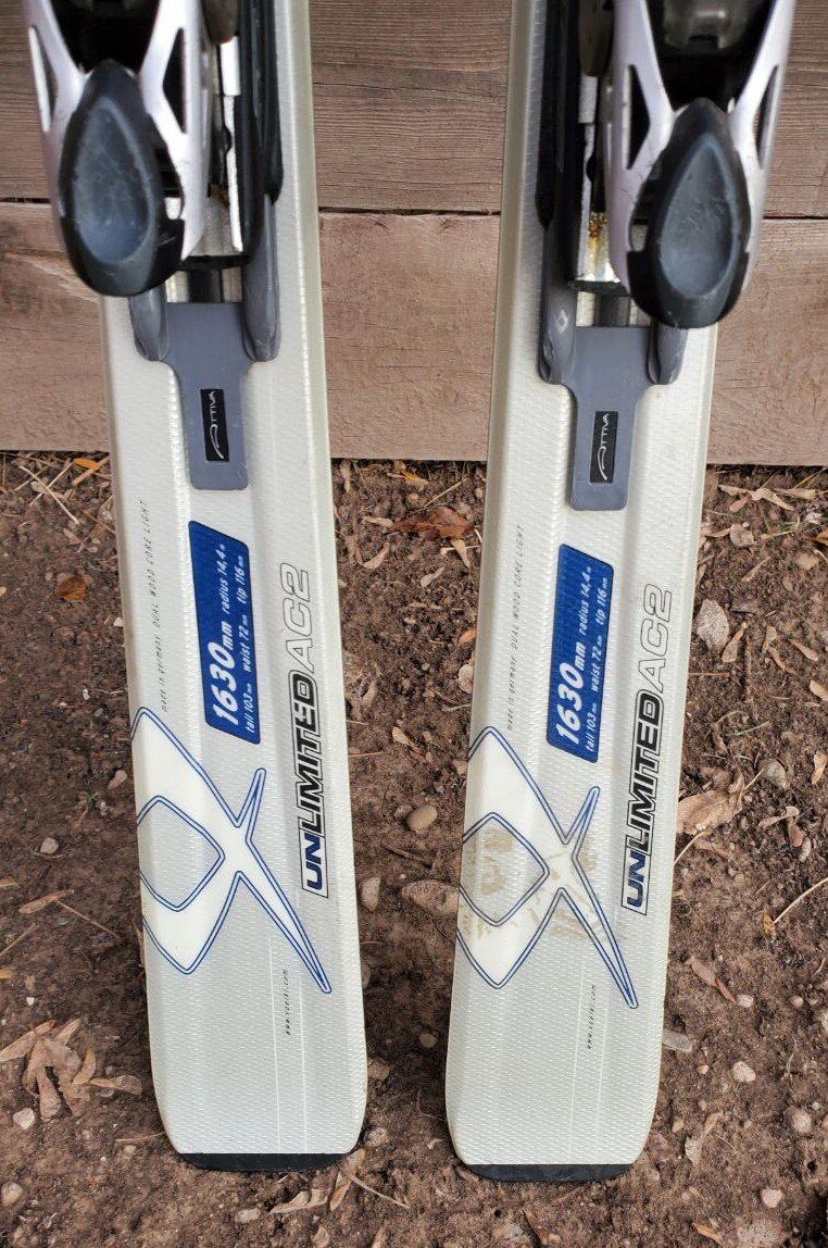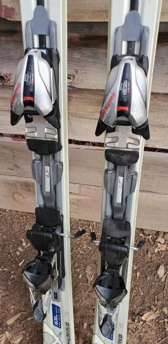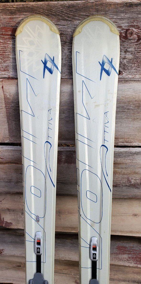 163 cm Women's Volkl Attiva all mountain downhill Snow skis with Marker Motion LT adjustable bindings. Skis are in great used condition with minor wear from use. Text please. Tip/Waist/Tail Dimensions: 116/72/103mm Turning radius: 14.4 m Marker Motion LT bindings