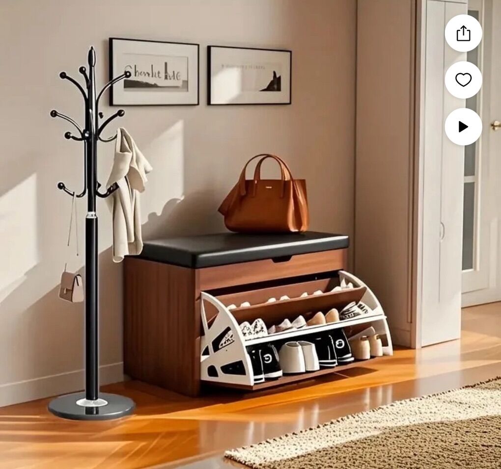 fillings provides comfort and convenience for the storage bench. It enables you to sit comfortably on the shoe cabinet bench to change shoes instead of squatting, and take a short break while taking off your shoes when back home after a busy day. Flip Drawers Shoe CabinetSuch powerful storage capabilities! Everywhere you look is filled with storage space, and this flip drawer contains 3 levels of shoe storage space, and each layer can hold 3-4 pairs of shoes to meet the storage needs;The right side is also equipped with 3 storage compartments,where you can place umbrellas,keys and other items to facilitate your travel. Durable And Comfortable Shoe Changing StoolThis shoe rack is made of high-quality density board, which is strong and durable, not easily deformed; reasonable frame structure, stable load-bearing; safe and reliable use experience for you and your family. Fits EverywhereVarious sizes available, allows the shoe rack bench provides storage space without taking up too much spaces, which can be placed anywhere of your home to give you intimate convenience, such as front door, entryway, hallway, living room, bedroom, mudroom, and etc. Easy AssemblyThis storage bench for entryway comes with all necessary installation hardware kits and very detailed and illustrated instruction for easy assembly. Any problem, feel free to contact with us.