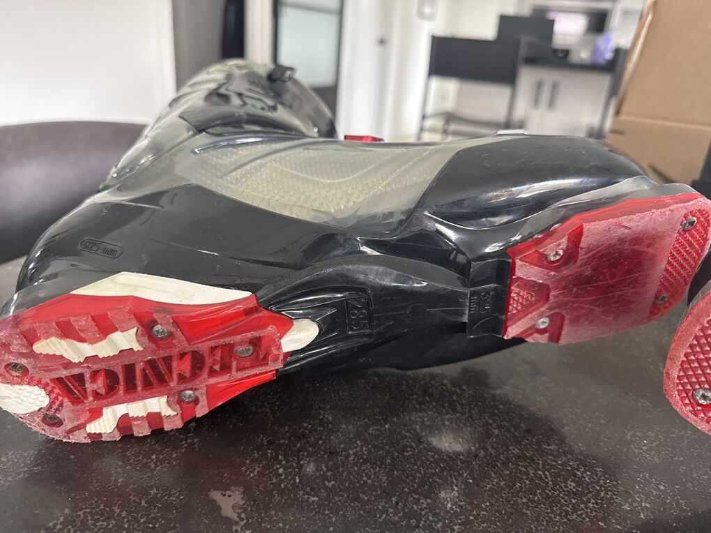 ApplePaySize should be 10 1/2 to 11 US men, boot has 325MM and 285 on the bottom of the boot. Still in great shape.